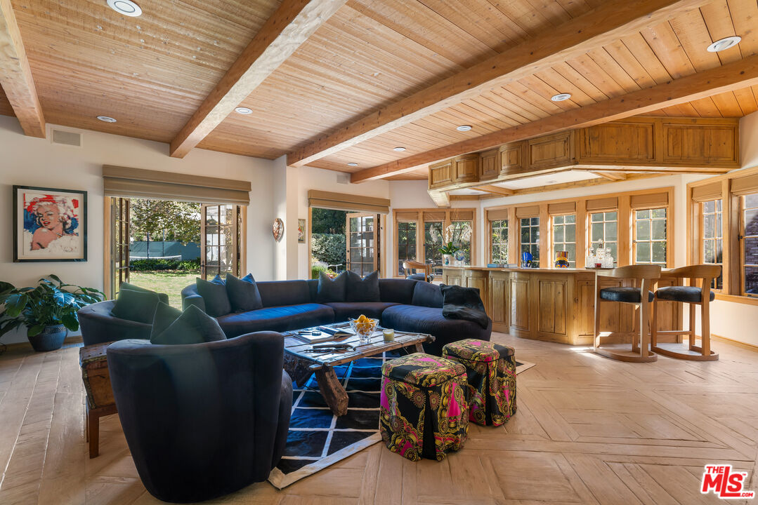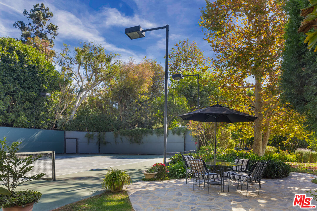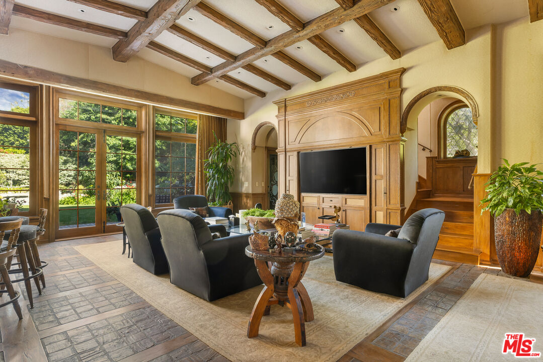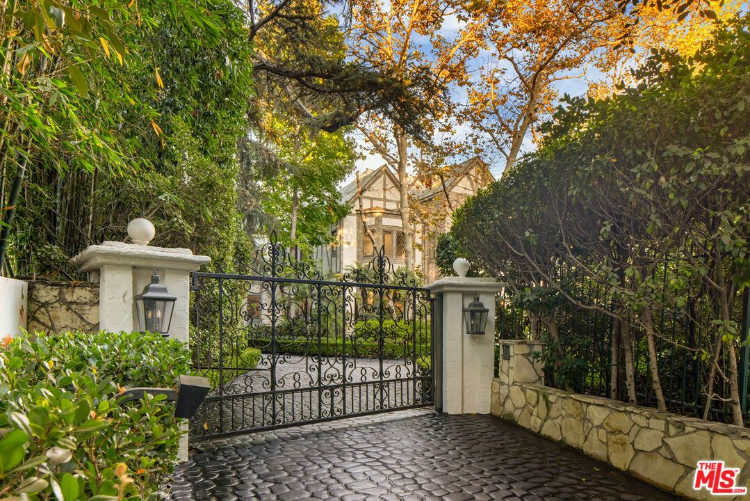 Steeped in Old Hollywood glamour, this extraordinary Beverly Hills estate is more than a home; it's a living piece of cinematic history. Once owned by Harry Warner, co-founder of Warner Bros., this Tudor-style masterpiece has hosted Hollywood royalty, global dignitaries, and some of the most legendary figures of the past century. Adding to its mystique, Marilyn Monroe was rumored to have stayed in the guesthouse, making this estate a true icon of Los Angeles' golden era. Set on a 1.15-acre flat lot with rare street-to-street access, the property offers unparalleled privacy behind three gated entrances. The meticulously landscaped grounds unfold like a private oasis, featuring a north-south championship tennis court, a serene grotto pool and spa, a koi pond framed by lush gardens and romantic fountains, and an expansive lawn perfect for grand entertaining. The charming guesthouse, steeped in its own storied past, houses the a guest suite, offering a private retreat for visitors. Inside, 12,000 square feet of refined luxury blend the romance of Old Hollywood elegance with modern comforts. Exposed rough-hewn beams, intricate hand-carved woodwork, and imported French hardwood floors create an ambiance of warmth and authenticity. The grand arched doorways lead to six opulent bedroom suites in the main residence, alongside an intimate library lounge, billiards room, state-of-the-art screening room, and private fitness center. A professional-grade country kitchen serves as the heart of the home, designed for both intimate family moments and large-scale entertaining. From the cobblestone driveway and porte-cochre to the towering heritage trees and manicured gardens, every detail of this estate reflects unparalleled craftsmanship and prestige. This is not just a residence; it is a rare opportunity to own a true Hollywood legacy, an architectural treasure that continues to captivate and inspire.