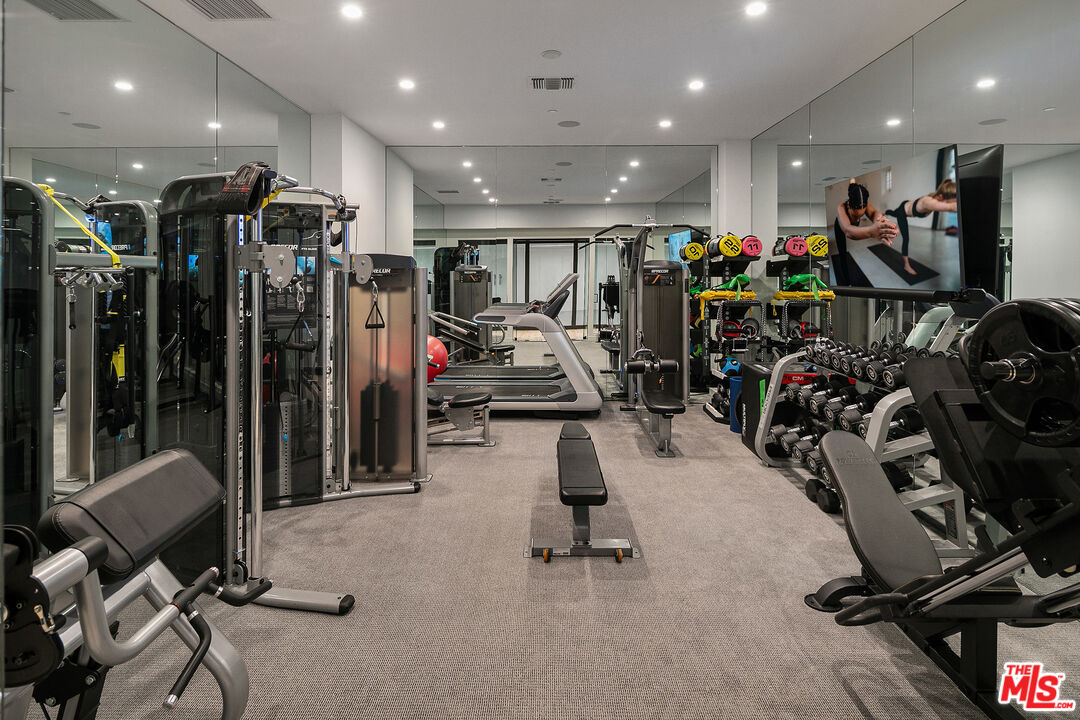 Positioned within the coveted Hidden Valley enclave of Beverly Hills, this impeccable estate offers privacy and tranquility behind secure gates, with 24/7 guard protection and lush, mature landscaping. Situated in one of the area's most prestigious guard-gated communities, this residence showcases timeless design, grand proportions, and a thoughtfully updated aesthetic that harmonizes with its natural surroundings. Every element of this home has been masterfully conceived to deliver an unparalleled living experience. A dramatic 24-foot ceiling in the entry foyer sets the tone, featuring custom-crafted millwork and elegant wrought-iron accents that echo throughout the interiors. Spanning approximately 12,000 square feet, the residence is graced with wide-plank white oak floors, 12-foot-high ceilings, and expansive windows that frame serene canyon vistas. The main level unfolds with a series of distinguished spaces, including a formal living room, office, formal dining room, and multiple powder rooms. A spacious family room seamlessly connects to the outdoor entertaining areas, where a sprawling backyard oasis includes a pool, spa, outdoor kitchen, bar, dining pavilion, and fire pit lounge. The chef's kitchen is a masterpiece of both design and functionality, outfitted with honed Calacatta marble countertops, a La Cornue 1908 range and oven, Wolf microwave, Sub-Zero refrigerator and freezer, dual Miele dishwashers, a wine fridge, and an oversized eat-in island, all framed by crisp white cabinetry. Two ensuite bedrooms and a two-car garage complete the main floor. Effortless access to the estate's three levels is provided by a private elevator. Upstairs, the opulent primary suite offers a serene retreat with a fireplace, a balcony with picturesque views, dual marble bathrooms featuring soaking tubs, and a pair of custom dressing rooms with abundant built-in storage. Four additional ensuite bedrooms, each with spacious dressing closets, complete this floor. The lower level features a host of amenities for relaxation and entertainment. With 11-foot ceilings, this space includes a cozy home theater, a wet bar, lounge, gaming area, temperature-controlled wine room, fully equipped fitness studio, and laundry facilities. Additionally, the subterranean auto gallery spanning approximately 2,590 square feet boasts a revolving car turntable and accommodates up to six vehicles, offering limitless opportunities for customization. Fully automated through Savant and Lutron systems, the home's technology provides seamless control over lighting, drapery, audio, televisions, fireplaces, and entry systems, ensuring modern convenience at every turn. Perfectly positioned within top-tier school districts and offering convenient access to Beverly Hills, the Westside, and the Valley's finest shopping, dining, and nightlife, this estate is a rare offering that combines sophistication, comfort, and cutting-edge amenities.