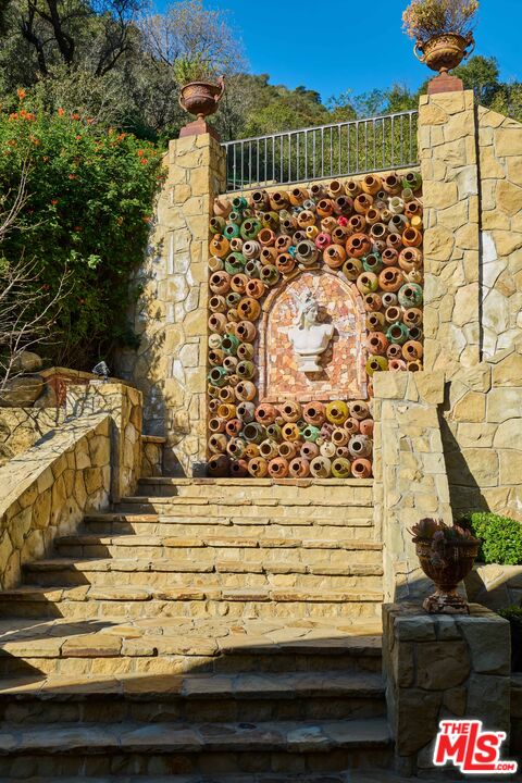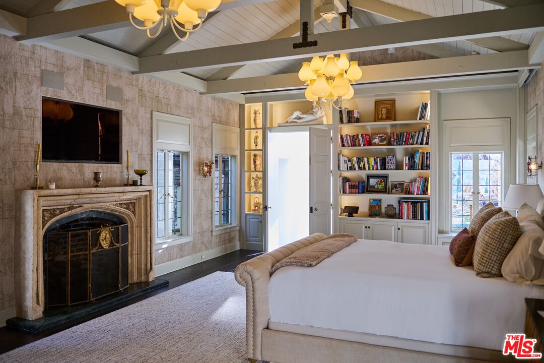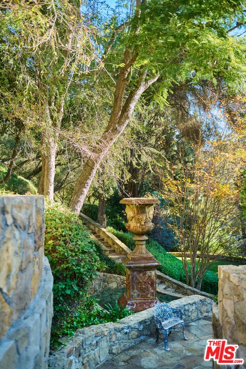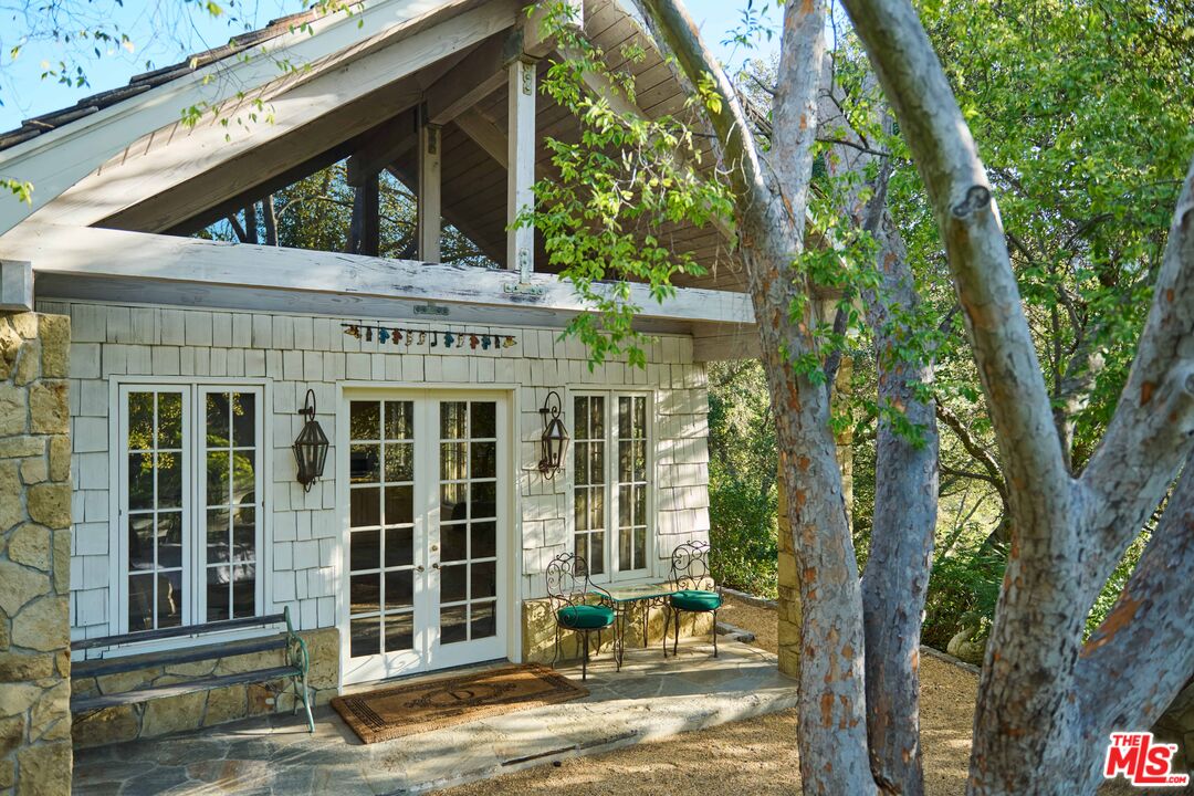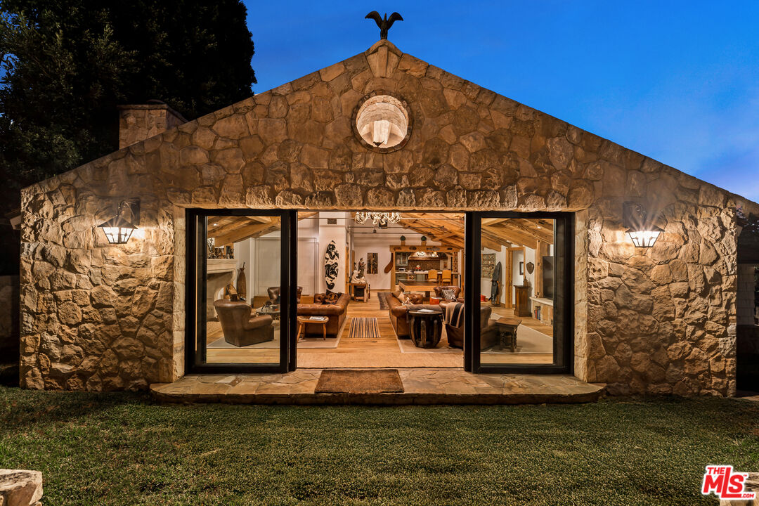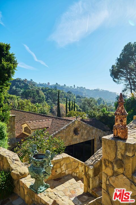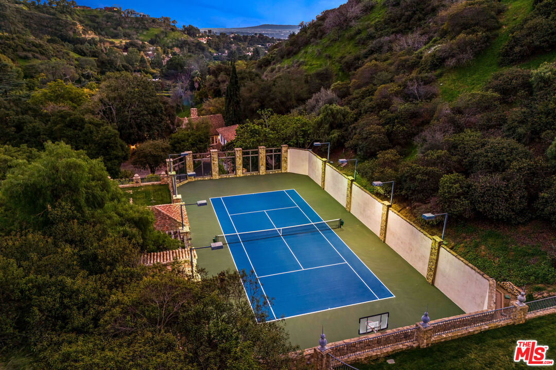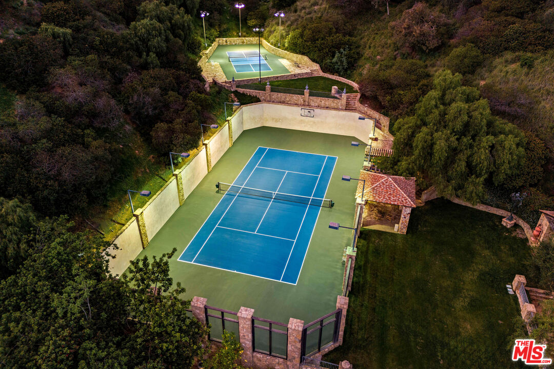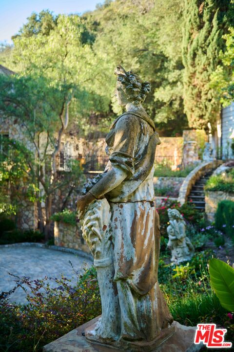Once the storied Beverly Hills estate of Hollywood legend James Cagney, this rare and formerly celebrity-owned gated compound presents a once-in-a-generation opportunity to acquire a historic luxury estate in Beverly Hills 90210. Tucked privately beneath Franklin Canyon Nature Reserve, this expansive multi-residence Beverly Hills compound spans more than five acres of secured gated grounds, offering an unheard-of combination of acreage, provenance, and seclusion. Extensively renovated, updated and restored over many years, the private gated estate unfolds as a village-like enclave with multiple residences connected by hand-laid stone pathways winding through tiered citrus gardens, sculptural courtyards, candle-carved stone walls, and museum-quality European statuary. Mature landscaping and curated outdoor rooms create a timeless environment ideal for both intimate living and large-scale entertaining. The "Main Villa" is a romantic architectural centerpiece featuring reclaimed European terracotta roof tiles, exposed trussed-beam cathedral ceilings, leaded glass windows, and multiple restored original fireplaces. Designed for seamless entertaining, the home flows effortlessly from wine cellar and butler's pantry to formal dining and elegant yet warm living rooms, evoking timeless character. This main villa residence offers two primary bedroom suites with couture-scale closets and both suites include grand ensuite baths, soaking tubs, double vanities, step in showers for two, while an additional guest bedroom suite features luxurious cedar closet dressing room and en suite bath. Additional structural assets across the estate compound include a secluded guest residence known as "The Boathouse," with wood floors and trussed beams of antique 19th Century reclaimed French Oak complete with its own private gated drive and porte-cochre, ideal as an event venue, creative retreat, or production studio. "The Carriage House-Artist's Studio," is a multipurpose creative studio with full kitchen, en suite bath and auto garages. Plus an additional detached "Guest Cottage", which was Cagney's original art studio where he complete many collection paintings but now renovated to include a full kitchen and en suite bath. This epic compound provides multiple self-contained living environments, making this an exceptional multi-generational Beverly Hills estate uniquely versatile. Other features and amenities include separate regulation tennis and pickleball courts with grandfathered night lighting, a tennis spectator pavilion with wet bar, a glass-tile swimming pool and spa with poolside cabana and outdoor dining bistro. The Pavillion and Pool Cabana each include a fully equipped outdoor chef's kitchen. Expansive flat lawns and play fields offer rare recreational space within the hills above Sunset Boulevard. A true trophy property, the former James Cagney Estate stands as a legacy Beverly Hills estate where architecture, landscape, and artistry converge, perfectly suited for multigenerational living, artists-in-residence, or those seeking an irreplaceable Hollywood history estate in one of Los Angeles' most exclusive enclaves.