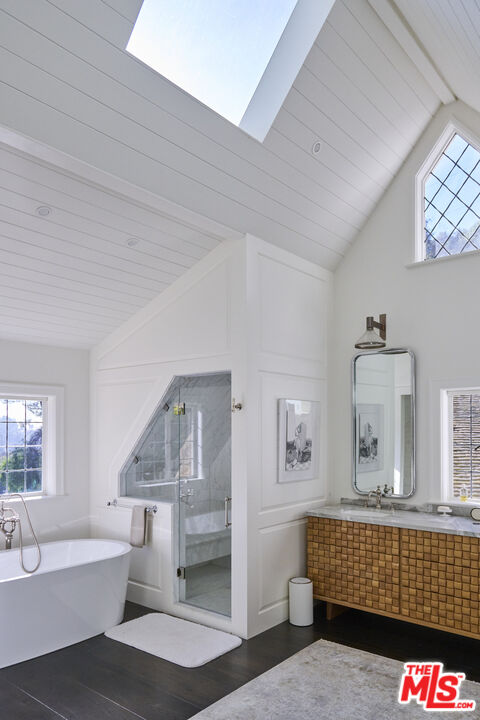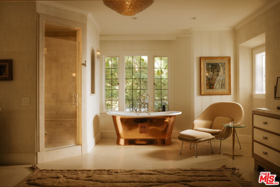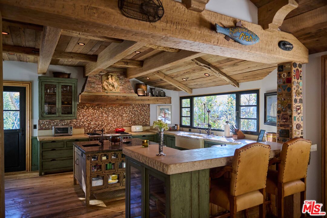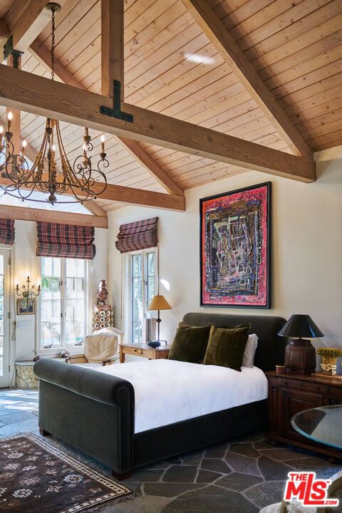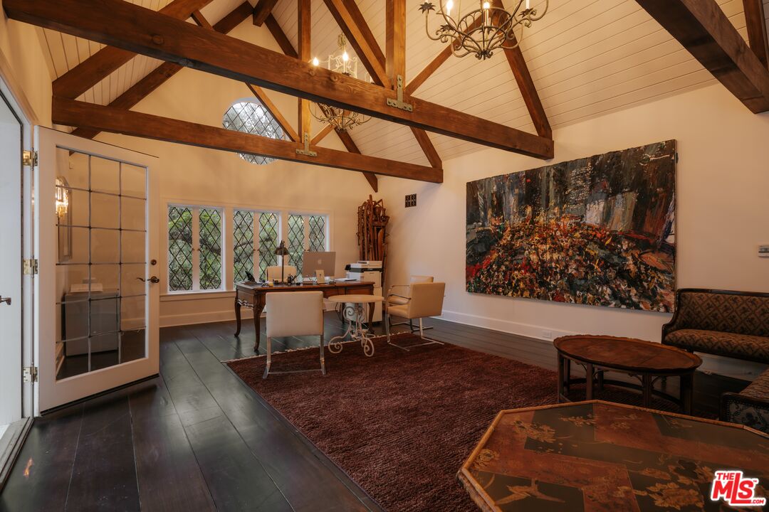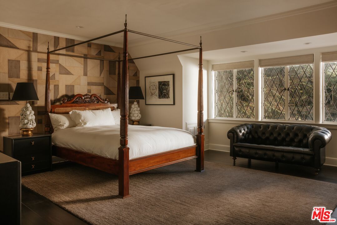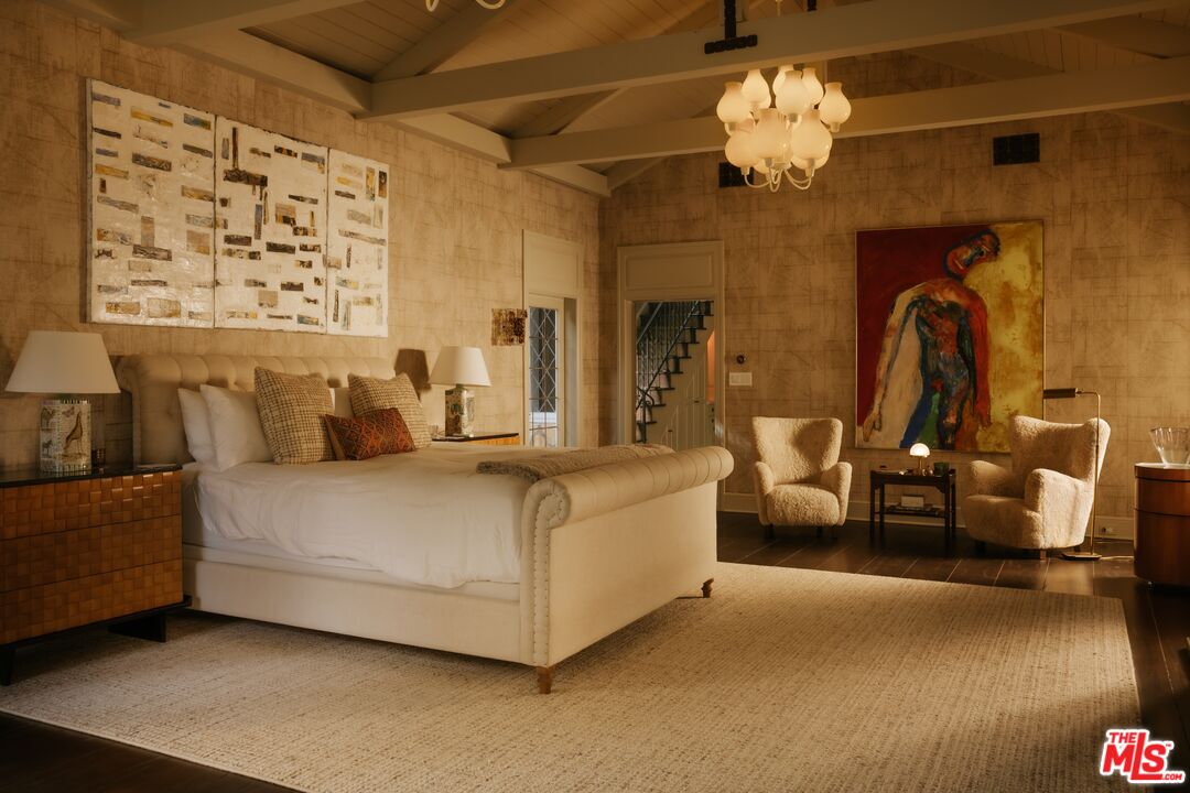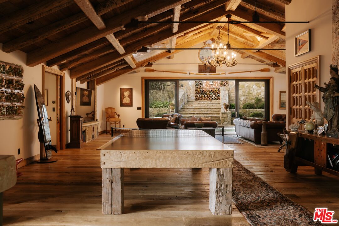 Once the storied Beverly Hills estate of Hollywood legend James Cagney, this rare and formerly celebrity-owned gated compound presents a once-in-a-generation opportunity to acquire a historic luxury estate in Beverly Hills 90210. Tucked privately beneath Franklin Canyon Nature Reserve, this expansive multi-residence Beverly Hills compound spans more than five acres of secured gated grounds, offering an unheard-of combination of acreage, provenance, and seclusion. Extensively renovated, updated and restored over many years, the private gated estate unfolds as a village-like enclave with multiple residences connected by hand-laid stone pathways winding through tiered citrus gardens, sculptural courtyards, candle-carved stone walls, and museum-quality European statuary. Mature landscaping and curated outdoor rooms create a timeless environment ideal for both intimate living and large-scale entertaining. The "Main Villa" is a romantic architectural centerpiece featuring reclaimed European terracotta roof tiles, exposed trussed-beam cathedral ceilings, leaded glass windows, and multiple restored original fireplaces. Designed for seamless entertaining, the home flows effortlessly from wine cellar and butler's pantry to formal dining and elegant yet warm living rooms, evoking timeless character. This main villa residence offers two primary bedroom suites with couture-scale closets and both suites include grand ensuite baths, soaking tubs, double vanities, step in showers for two, while an additional guest bedroom suite features luxurious cedar closet dressing room and en suite bath. Additional structural assets across the estate compound include a secluded guest residence known as "The Boathouse," with wood floors and trussed beams of antique 19th Century reclaimed French Oak complete with its own private gated drive and porte-cochre, ideal as an event venue, creative retreat, or production studio. "The Carriage House-Artist's Studio," is a multipurpose creative studio with full kitchen, en suite bath and auto garages. Plus an additional detached "Guest Cottage", which was Cagney's original art studio where he complete many collection paintings but now renovated to include a full kitchen and en suite bath. This epic compound provides multiple self-contained living environments, making this an exceptional multi-generational Beverly Hills estate uniquely versatile. Other features and amenities include separate regulation tennis and pickleball courts with grandfathered night lighting, a tennis spectator pavilion with wet bar, a glass-tile swimming pool and spa with poolside cabana and outdoor dining bistro. The Pavillion and Pool Cabana each include a fully equipped outdoor chef's kitchen. Expansive flat lawns and play fields offer rare recreational space within the hills above Sunset Boulevard. A true trophy property, the former James Cagney Estate stands as a legacy Beverly Hills estate where architecture, landscape, and artistry converge, perfectly suited for multigenerational living, artists-in-residence, or those seeking an irreplaceable Hollywood history estate in one of Los Angeles' most exclusive enclaves.