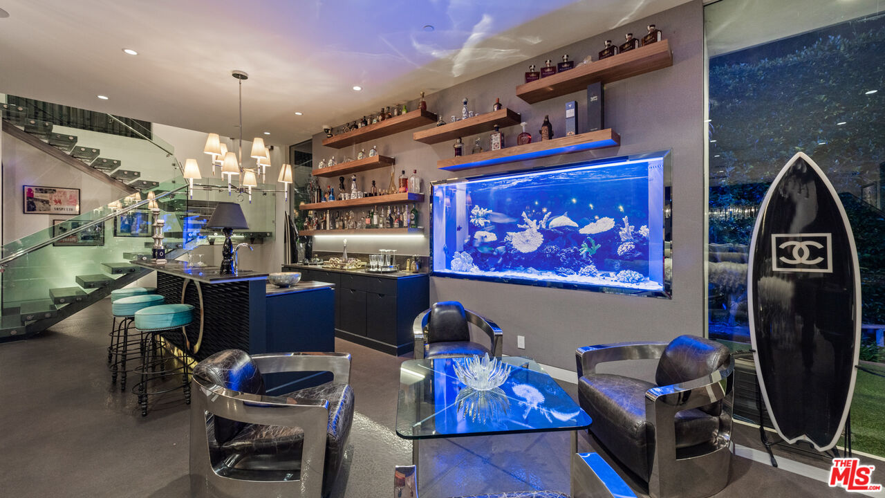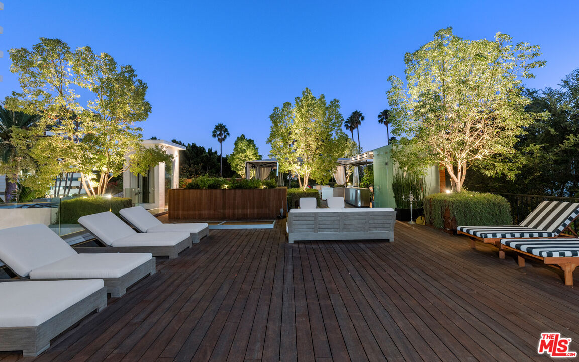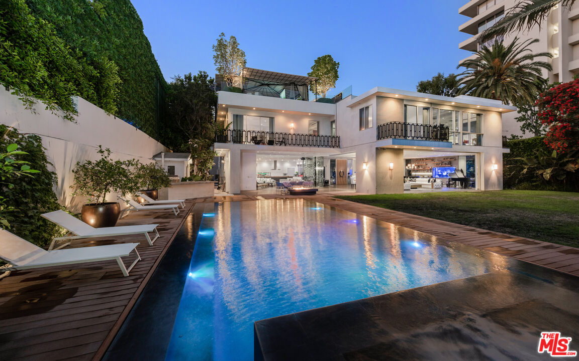 Available fully furnished and turnkey for short term monthly and longer term leases! Incredible fully furnished lease in a prime location. Super luxury personal home of experienced real estate and development family in residential and commercial many years. Fully gated, great dual entry motor court and parking garage with commercial elevator. Designed with family in mind and fabulous entertaining the home was executed with great care and attention to detail. Incredible rooftop with full kitchen, endless fruit and vegetable gardens, firepit, multiple seating areas and a bathroom, A grand bar to the left with saltwater aquarium, sitting room in front of you, formal dining and floor to ceiling glass wine refrigerator to your right are wrapped in glass and Fleetwood pocket doors which connect you seamlessly to natural light, fresh air, and views of the professionally landscaped grounds. The private yard features a swimmer's pool surrounded by a wooden deck, spa, lawn, lush koi pond, waterfall, and patio with dining table and fire pit. Step in from the patio to the comfortable family room with fireplace and drop down projection screen and into the gourmet kitchen appointed with Italian cabinetry, massive island, breakfast bar and nook. The rooftop garden deck offers you a cabana lounge with fire pit and al fresco dining area for entertaining or relaxing on warm Southern California nights. The floating staircase takes you up to the lavish guest rooms, highlighted by the dramatic primary suite with its fireplace, drop down big screen, lounge, balcony, expansive walk-in closet, and bath with dual basins, shower, soaking tub, and infrared sauna. Four exquisite additional en suite guest rooms. The main residence is exquisitely appointed, finished with the finest materials, and includes a gymnasium, staff quarters, elevator, and Control Home automation system. Twin guest houses are detached from the main house and feature kitchenette, bedroom, and bath, the larger of the two includes a separate living area. The entire compound features 10,000 sq ft of living spaces on a half acre lot, strategically located in close distance of fine dining such as Boa, Soho House, Lavo, sunset strip and minutes to Rodeo Drive and the Beverly Hills Hotel.