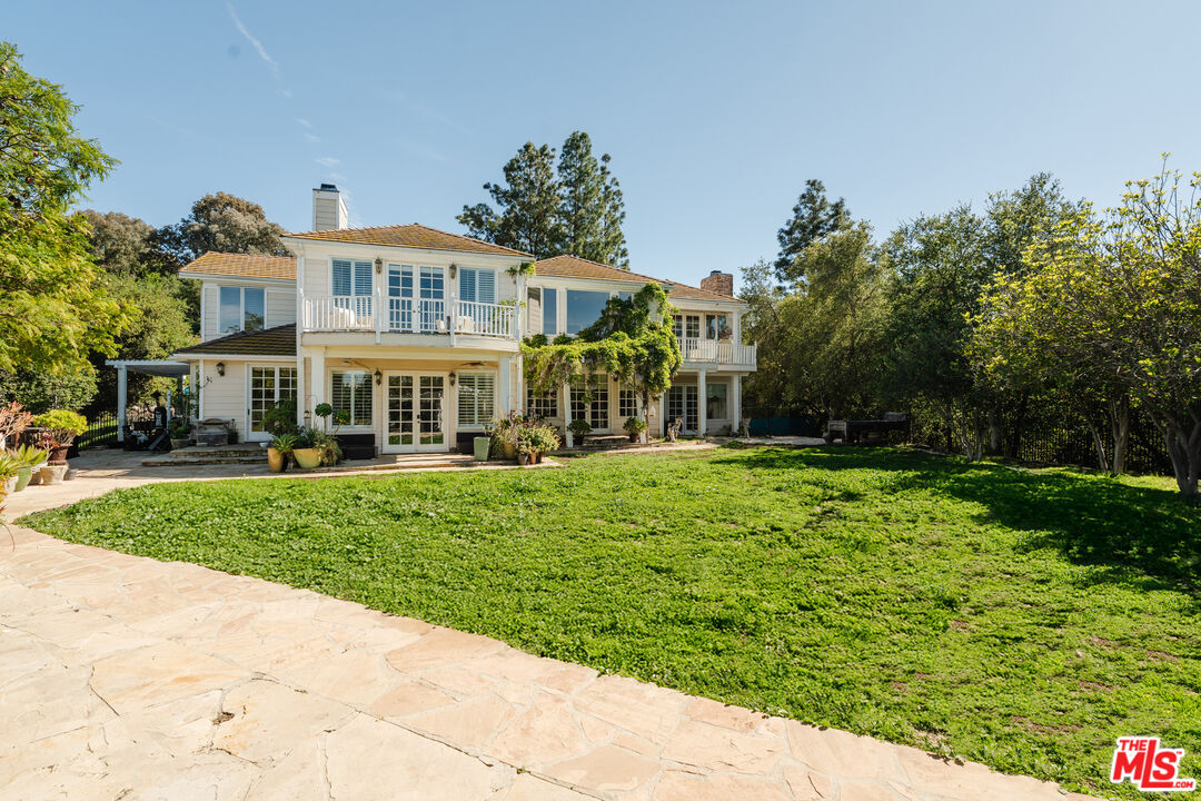 This custom-built estate, in the gated Calabasas community of Braewood, combines privacy, serenity, and sophistication. It spans nearly two acres and is tucked at the end of a quiet cul-de-sac. Designed by the original developer of the community for his own family, this residence is a true masterpiece, offering a unique blend of light-filled spaces, tranquil views, and an optimal floor plan for the discerning buyer. Braewood is ideally located, offering the perfect balance of seclusion and convenience. Just minutes away, you'll find a variety of great local restaurants, shopping, and top grocers. With easy access to the Westside and located in the highly coveted Las Virgenes Unified School District, the home is perfectly situated for both everyday necessities and enjoying all the best the area has to offer. As you step inside, you are greeted by a grand two-story foyer framed with expansive windows and gallery walls, perfect for displaying art. The dramatic spiral staircase leads you to the second floor, where three spacious bedroom suites await. At the top of the stairs, the landing features large picture windows that showcase incredible panoramic views, creating a serene space ideal for lounging or working. The family room exudes a timeless Ralph Lauren feel with its custom stone fireplace, rich wood details, and French doors that open seamlessly to the enchanting backyard. Located adjacent to the kitchen, this inviting space is perfect for both intimate gatherings and relaxed everyday living. A formal living room, featuring a beautiful fireplace and French doors leading to the backyard, offers a refined space for entertaining or unwinding in comfort. The elegant formal dining room also boasts French doors that open to the backyard, allowing for a seamless indoor-outdoor flow and the perfect setting for dining al fresco under the enchanting wisteria canopies. The chef's kitchen is a culinary haven, featuring high-end appliances, a double oven, vast granite countertops, a large center island, and a walk-in pantry. Large windows above the sink frame picturesque views of the grounds. Adjacent to the kitchen is a sunny breakfast room, offering the ideal spot for casual dining. The downstairs also features two additional bedroom suites with private baths and large closets. The spectacular primary suite is a private sanctuary, filled with natural light and offering direct access to a large office or sitting room with a fireplace and a generous balcony overlooking the storybook-like grounds. The primary bathroom is exceptionally spacious, featuring dual sinks, a luxurious soaking tub, an oversized shower, a vanity and two large walk-in closets. Outside, the magical property unfolds with expansive green lawns, a stunning natural backdrop, and multiple areas designed for relaxation and recreation. Whether lounging under the wisteria canopies, gathering for outdoor dining, or enjoying the open space for play and fun, the backyard is a true retreat. A long private driveway leads to a spacious three-car garage, providing ample parking and convenience. With a perfect blend of tranquility, comfort, and modern sophistication, this estate is a true entertainer's dream!