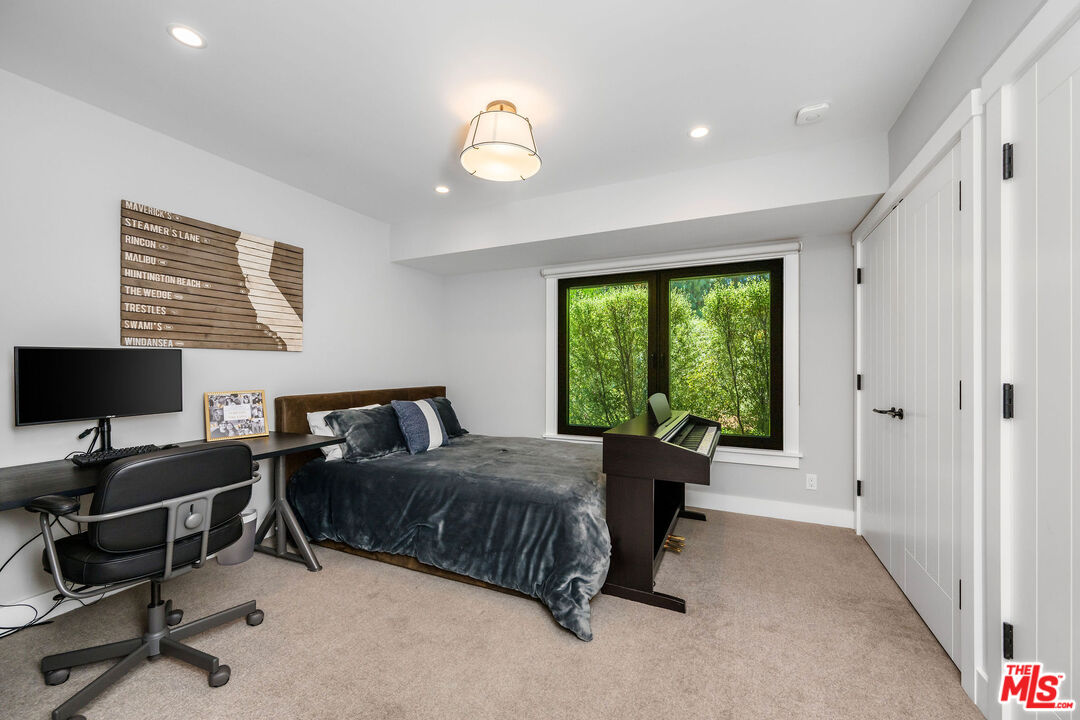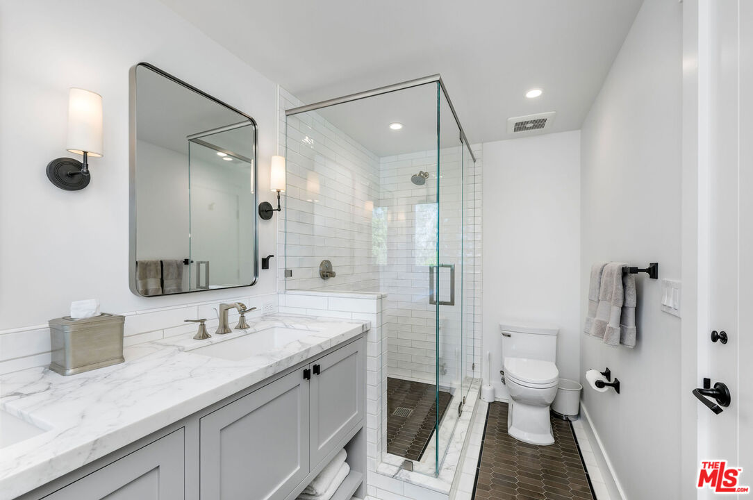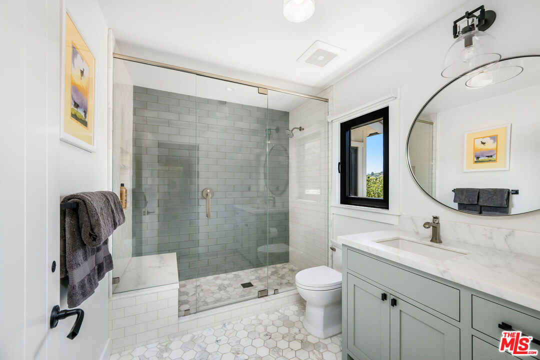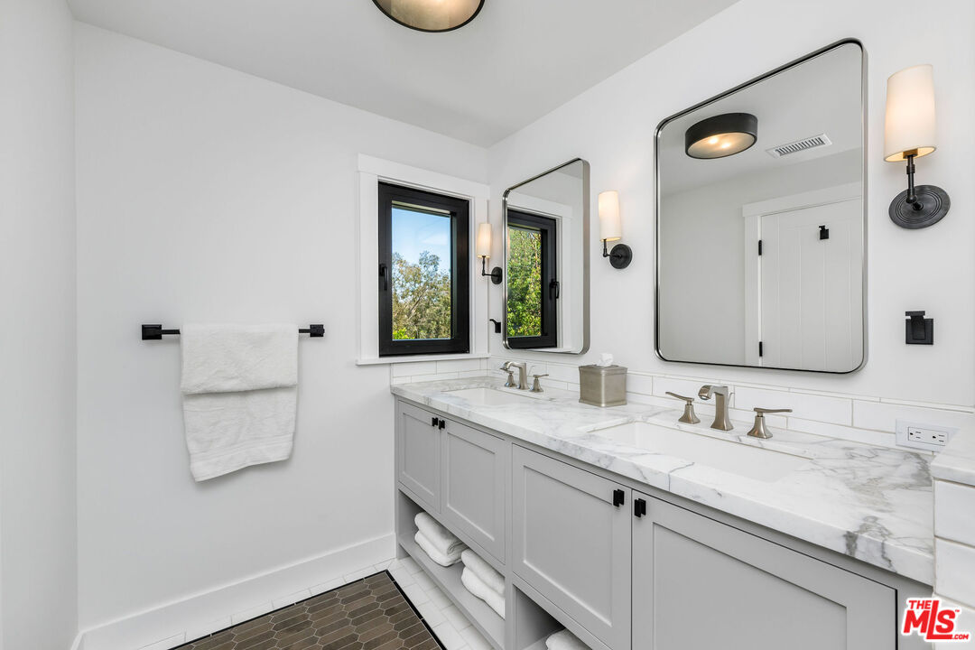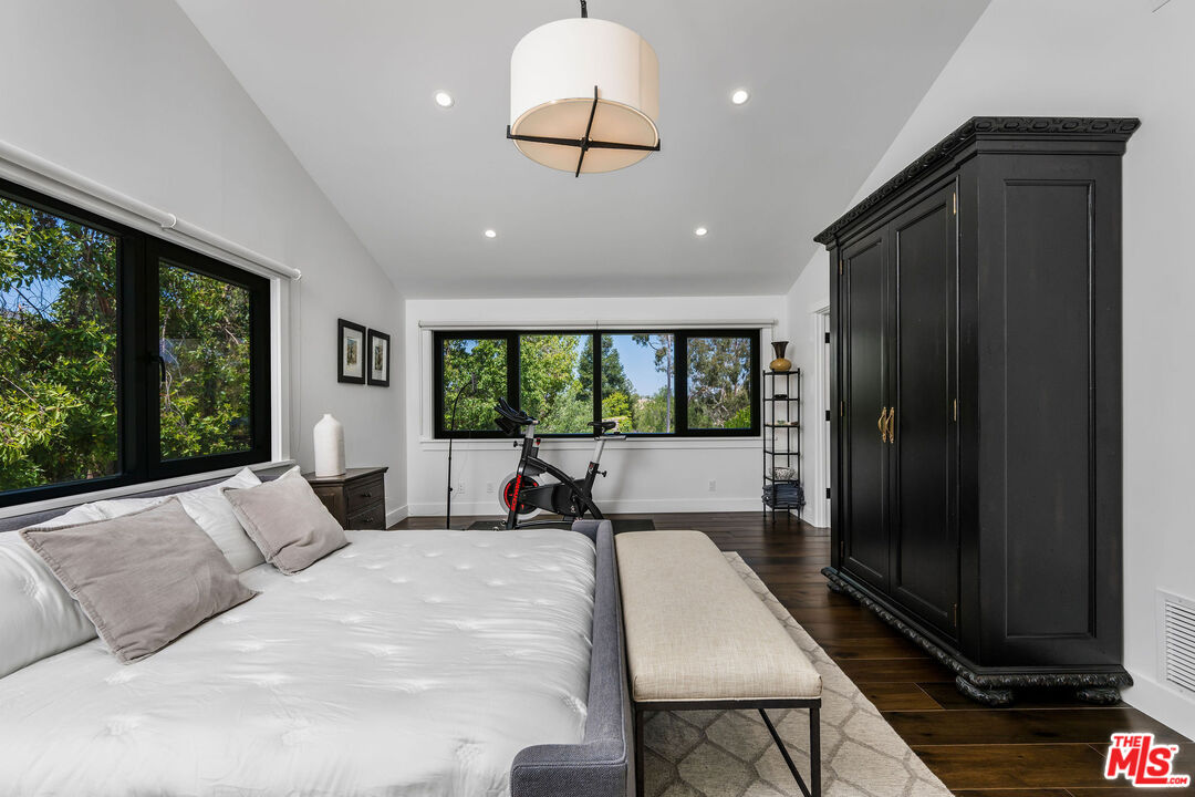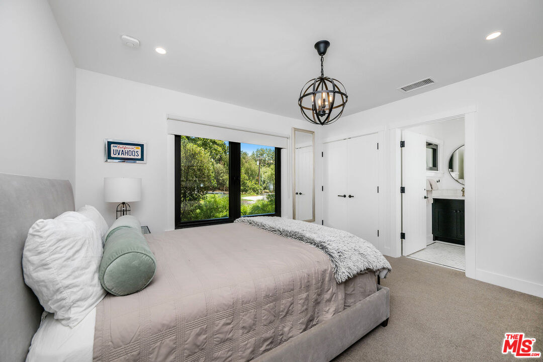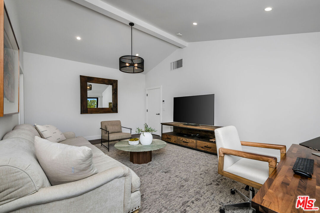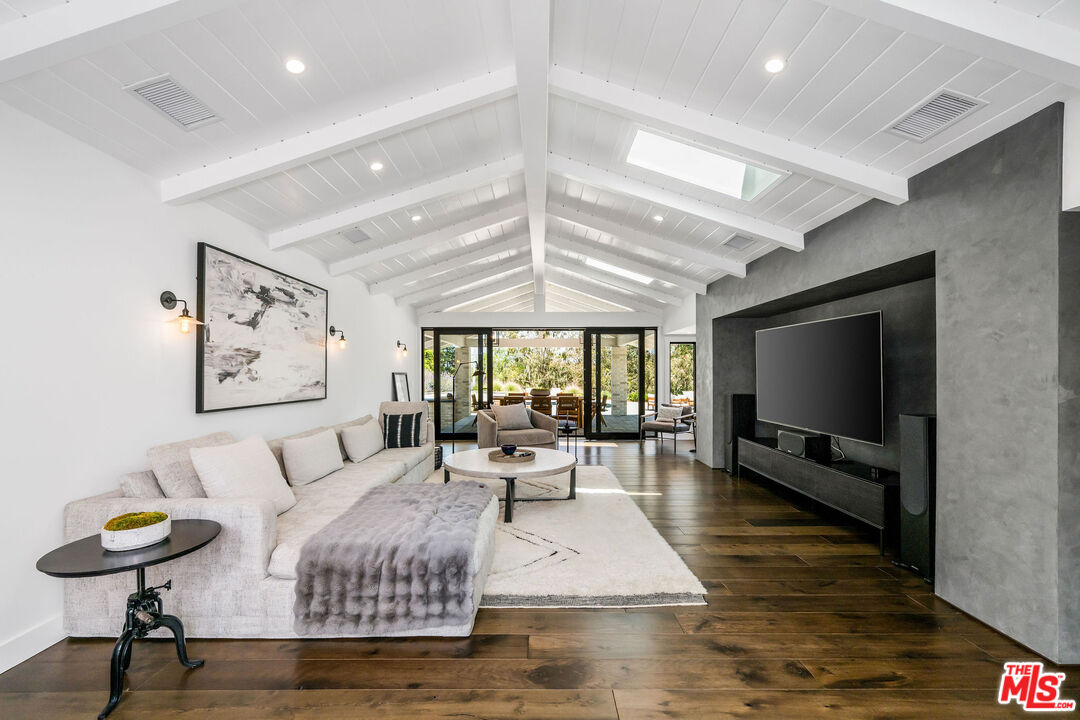 This quintessential Hidden Hills estate is like no other. An outlier in all of the best ways, this property has retained its 1960's pedigree while offering all of today's luxuries in an earthy, California palette. One of its many unique features is that it lives like a single story with only two of its six en-suite bedrooms on the second floor. Situated on one of Hidden Hills most sought after streets on a flat lot, this property ushers you in with its long circular driveway and beautiful native landscaping. Upon entering, you'll notice the sophisticated materials used to transform this home into a sanctuary for everyday living and entertaining. Designed by Jessica Risko Smith to capture luxurious comfort as well as simplicity, this home offers understated elegance throughout. Featuring Oregon oak flooring, the elegant living room flows out to the yard through European tilt-turn doors. The spacious family room has gorgeous vaulted ceilings with skylights and leads out to a covered al fresco dining area. The spectacular kitchen also has vaulted ceilings and skylights as well as dual marble topped islands. The perimeter soapstone countertops and cabinetry are framed with European tilt-turn windows with views to the front. A walk-in pantry and high-end Miele and SubZero appliances elevate the space. Adjacent family and dining rooms offer seamless flow for entertaining. Three en-suite bedrooms with stunning baths as well as a stackable laundry closet lead to the main level primary suite. The primary suite features cathedral ceilings, dual walk-in closets and doors leading to the patio. The spa-like primary bath has curated details such as an oak dual vanity with center storage, marble flooring, soaking tub and large shower. Additional highlights include a 500 sq ft office/flex space which opens to the yard, a spacious mudroom with prep sink and full laundry, powder room and beautiful pool bath with shower. Two additional vaulted-ceiling bedrooms are located upstairs, each ideal as guest suites or additional primary suites. Outdoor living is just as impressive, with a Pebble Tec pool and spa, a built-in BBQ with soapstone counters, a covered patio, and beautifully landscaped grounds. The 1.25-acre lot also includes a flat area suitable for a barn, ADU, tennis court, or other structure. This home is both high-performance and highly comfortable. Every detail has been thoughtfully considered to support a lifestyle that is elevated, and beautifully in tune with its surroundings. Every system - from foundation to roof - were upgraded, creating a property that blends modern function with timeless design. All located in prestigious Hidden Hills with its top tier security, numerous community amenities, horseback riding arenas and trails, and Blue Ribbon schools.