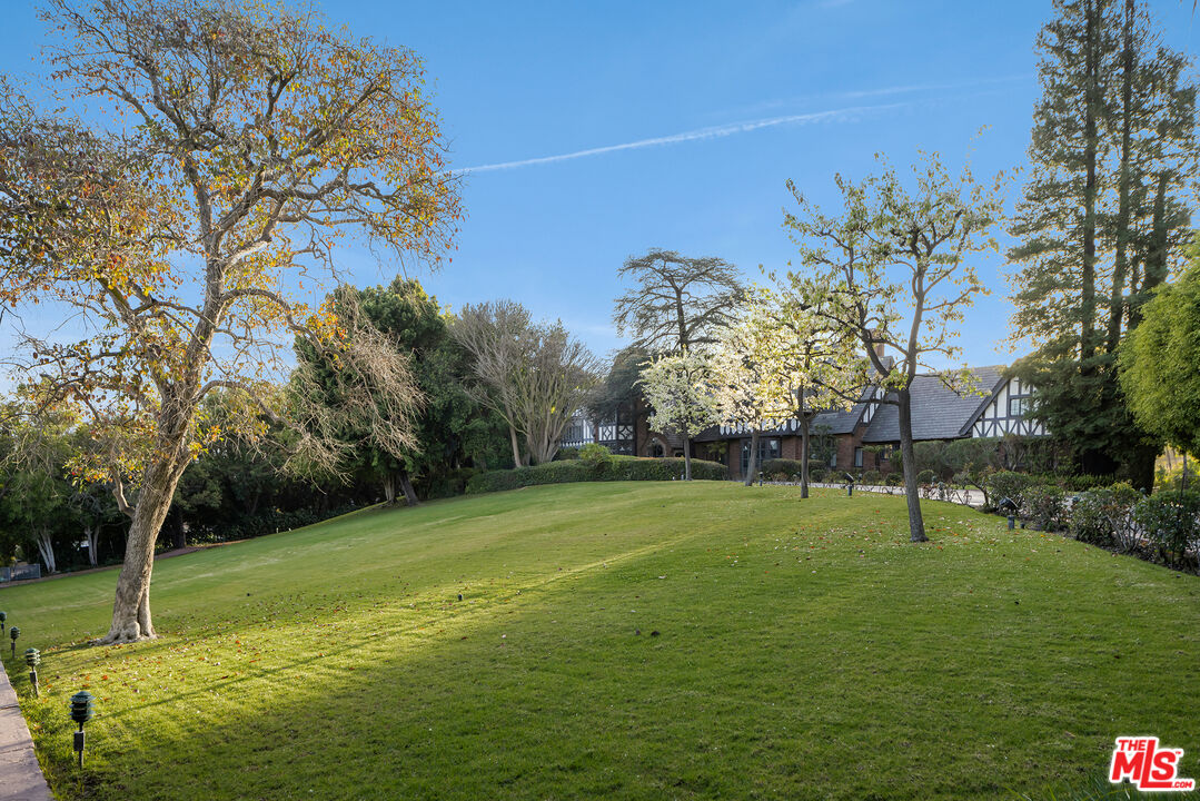 Designed by Elmer Grey, the visionary architect behind the iconic Beverly Hills Hotel, this extraordinary Tudor Revival estate is a rare generational offering tucked behind private gates in prestigious Lower Bel Air. Originally completed in 1926, the residence spans 18,861 SF of finished living space, including an 8,825 SF main house, a 7,132 SF guest house, and a 2,005 SF staff/security house, all enhancing the grandeur and versatility of this landmark estate. Spanning over 2 acres of exquisite park-like grounds, this is an unparalleled opportunity to own a piece of history, an estate of grand proportions where the possibilities for preservation, expansion, or reimagining are truly limitless. With a landscape of unrivaled scale and beauty, the property unfolds like a private countryside retreat. Rolling hills and sprawling lawns, framed by towering mature trees of varying species and tranquil walking trails, set an enchanting backdrop rarely found in the city. At the heart of the estate, expansive stone terraces, verdant lawns, and intimate patios provide seamless transitions between the grand residence and the breathtaking surroundings. Two sun-drenched pools, resort-style lounge areas, a professional sport court with 2 studios/2 bath, and an enchanting walking bridge add to the estate's endless grounds. Steeped in elegance, the grand Tudor-style main house preserves its rich architectural heritage while offering a canvas for modern refinement. Inside, coffered wood-paneled walls, exquisite stone fireplaces, and soaring vaulted ceilings with rich, original wood beams set a tone of stately grandeur throughout the estate. Diamond leaded windows flood the interiors with natural light, framing sweeping views of the estate's lush surroundings. Designed for entertaining, the residence features a formal dining room, an cozy library that extends to a grand outdoor terrace, and multiple living areas that seamlessly connect to the gardens. The upper-level primary suite wing is an indulgent private retreat, complete with a balcony, a vanity hallway reminiscent of Hollywood's golden era, multiple walk-in closets, and dual bathrooms. An intimate sitting room with a private bar and upstairs dining area adds to the suite's distinction. 2 additional en-suite guest rooms complete this level, while a 3-bedroom, 2-bathroom staff quarter ensures seamless household operations.Beyond the main residence, the estate boasts an array of private guest accommodations and specialty structures, ensuring flexibility and privacy across the grounds. The Guest House Villa is a self-contained home with ample en-suite bedrooms for guest and staff, a formal living room with a wet bar, and a spacious kitchen and dining room, all complemented by multiple gathering spaces. French doors open to an expansive private patio, perfect for hosting, complete with its own outdoor bathrooms and a separate pool.Enhancing both accessibility and privacy, the estate is also thoughtfully designed with two separate gated driveway entrances. Additionally, 235 St. Pierre, directly neighboring the estate, is also available, offering the option to acquire an unprecedented 3.8-acre legacy estate in one of the most prestigious enclaves in the city. A property of this magnitude is more than a residence it is a statement of history, scale, and exclusivity, an opportunity that will likely never be replicated.