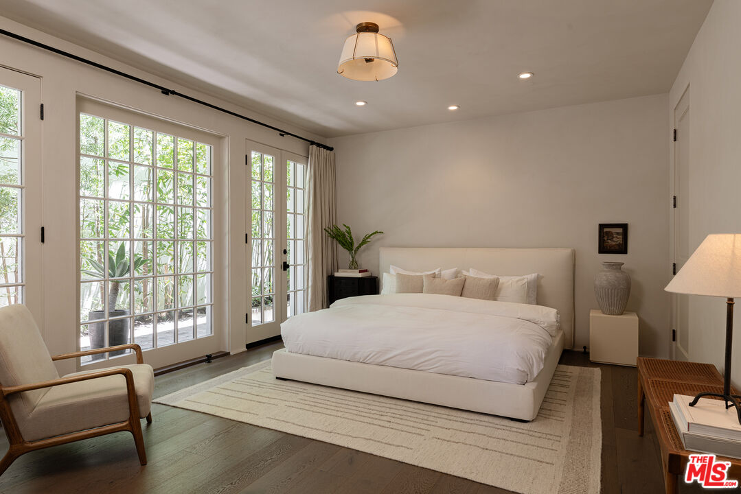 Curated to perfection by a visionary designer, La Presa sits atop coveted Outpost Estates as a study in architectural brilliance and warm, contemporary sophistication. Behind a gated entry, a tall faade draped in California greens and hand-laid brick motor court introduce the residence, enveloped by mature landscaping and security systems that ensure the utmost privacy. Upon entry, sky-high vaulted ceilings and floor-to-ceiling glass frame downtown to ocean views that stretch across Hollywood's storied hillsides.Majestic brass chandeliers and a grand double-height foyer illuminate sculptural arches and original wood beams, exuding both grandeur and warmth immediately upon entry. Throughout the home, every lighting fixture from chandelier to hanging pendant, has been hand-selected and sourced from Europe, each piece a unique statement of vintage luxury tailored to its specific setting. The result is a luminous atmosphere that evokes a sense of otherworldly calm, where every glow and shadow is as thoughtfully composed as the architectural elements themselves.Stone fireplaces framed by cascading, bespoke glass sconces add a nod to old Hollywood elegance, further defined by curated materials and refined design elements, while corridors of ingeniously crafted arches open to voluminous living and entertaining spaces. A seamless flow guides you through the large formal living room, where floor-to-ceiling windows and black steel French doors open to expansive outdoor entertaining areas with sparkling panoramic views, blurring the line between interior and exterior living.Adjacent to the formal living room, the office space is a sunlit enclave featuring custom built-ins and a rare floral ceiling light that glows softly as the sun sets, casting an otherworldly ambiance across the room. Continuing the motif of vintage opulence, the nearby living room showcases an exceptional sunflower motif, its decorative tin panel ceiling a rare artful statement, punctuated by a one-of-a-kind chandelier out of the pages of a magazine.The kitchen and dining room embody refined luxury, with Wolf and Miele appliances seamlessly integrated into rich black cabinetry and Italian marble surfaces that exude natural artistry. An amber-hued Murano glass chandelier casts a warm glow, complementing the striking plaster hood and the soft, ambient light from custom wall sconces. Expansive windows frame breathtaking city and ocean views, wrapping each space in a dynamic interplay of light and texture. Upstairs, the primary suite is a private retreat crowned by another Murano glass chandelier. French doors lead to a wraparound terrace with explosive city and ocean views, while the ensuite bath is luxuriously appointed with large shower and soaking tub, along with dual vanities and a gallery quality walk in closet. Guest suites continue the aesthetic, each with hillside or ocean views and beautifully curated ensuite bathrooms.The lower level houses a private studio with a recording room a true Hollywood enclave. Outside, tiered vegetable gardens, a sundeck, and a fire pit lounge provide tranquil pockets for retreat, while a spacious pool deck and barbecue area invite grand-scale entertaining. Completing the estate are dual garages, a vaulted theater room, and a maid's quarterseach space thoughtfully designed to maintain the home's curated elegance and cinematic ambiance.