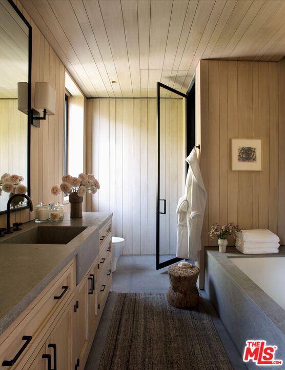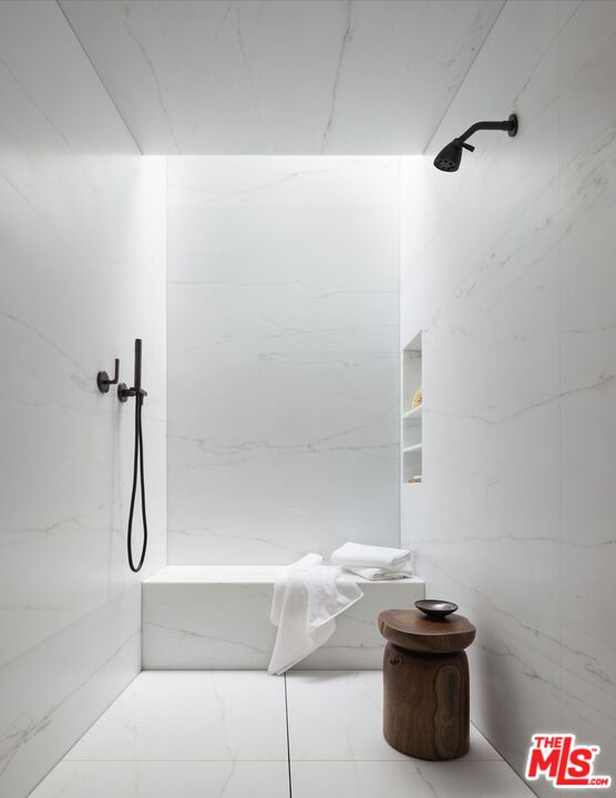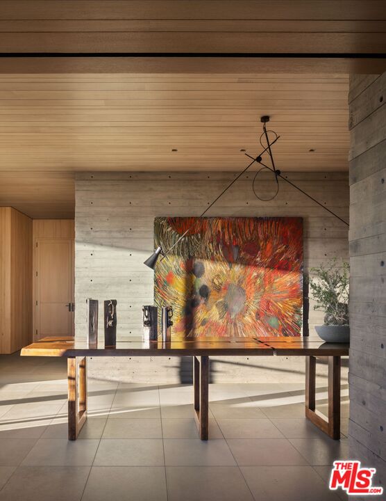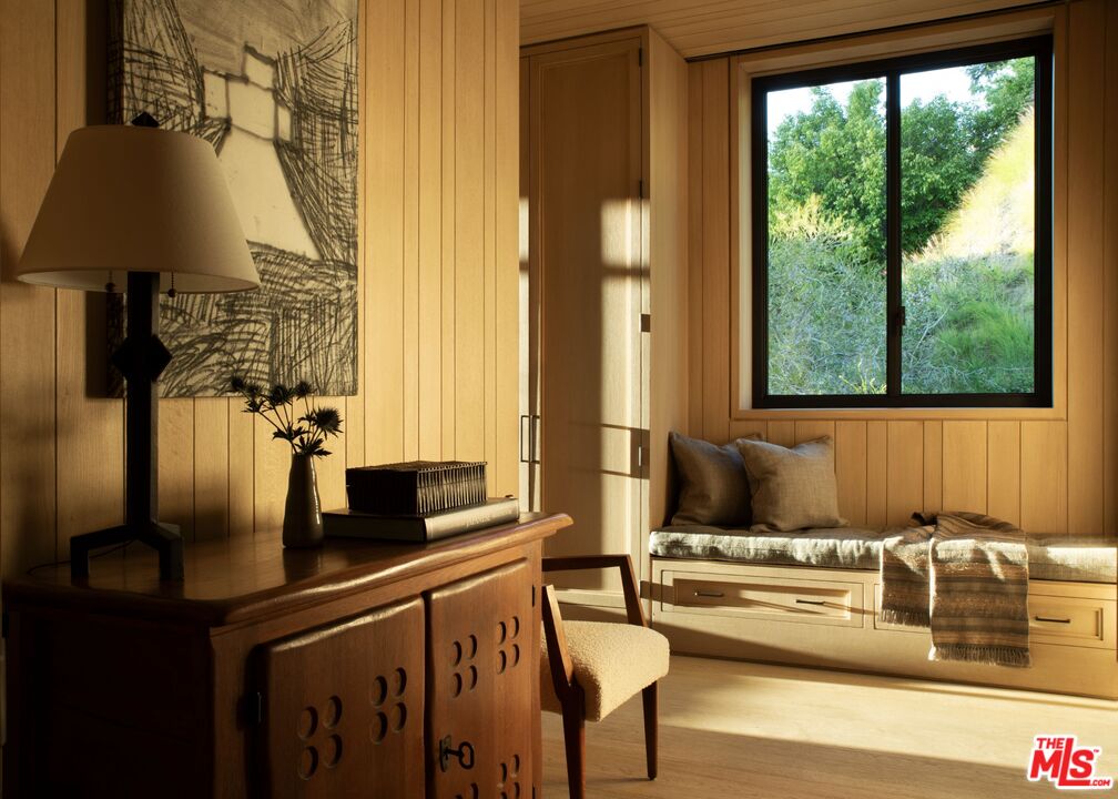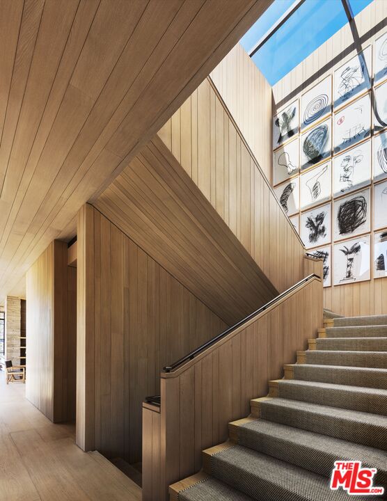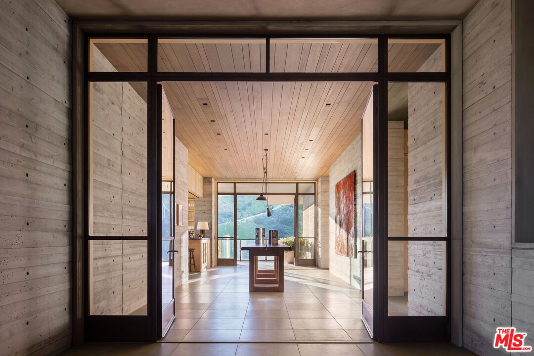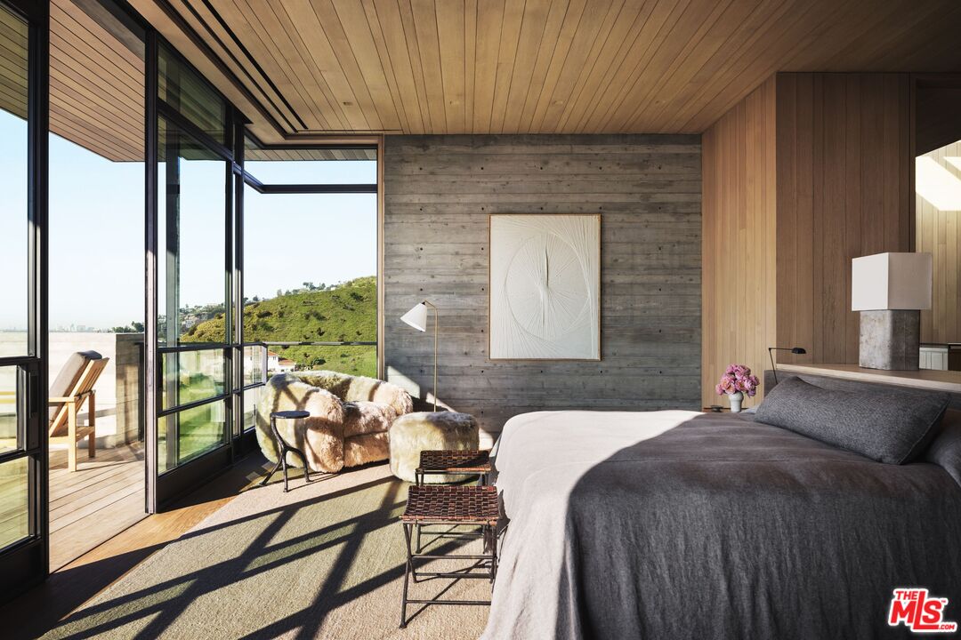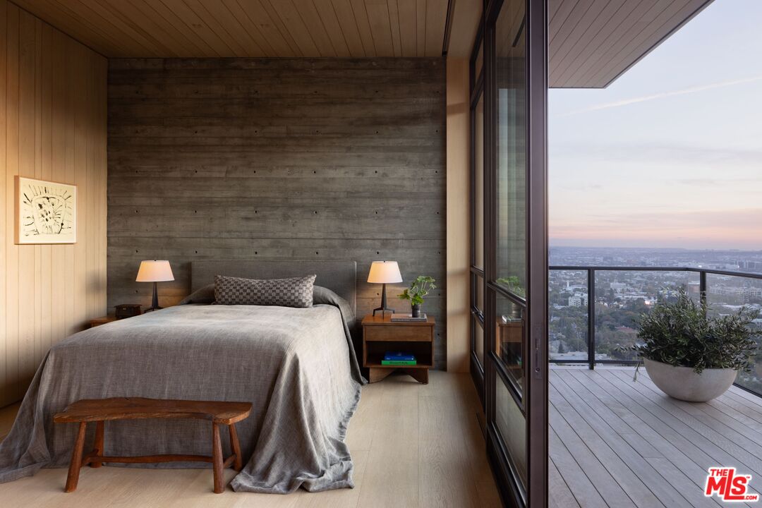 The Hollywood Hills House designed by Scott Mitchell Studio is a monumental and versatile modern villa rising out of the Hollywood Hills. The layered and terraced house - designed for living and entertaining - embraces views that span L.A.'s cityscape from east to west and out to the Pacific Ocean. This property is set on Los Angeles's most iconic promontory that extends over one acre with no neighbors on either side and 270 views of the entire city. Set at the 50-yard line of legendary hot spots Chateau Marmont, Tower Bar, and the Hollywood Bowl, the energy of the city can be seen and felt from the estate's peaceful privacy. Additionally, the property borders state land so no building can be constructed behind it, and it has private access to hiking in the famous Runyon Canyon. The form of the house follows a rigorous commitment to rich, organic materials and light. Grand outdoor decks provide seamless indoor and outdoor living. With expansive volumes over three floors, the tranquil and rooted hillside haven exudes a sense of balance, repose and a seamless connection to the natural landscape. A secluded driveway inclines to an impressive, cobbled motor court that can accommodate 12 or more cars and is nestled under the house with far-reaching views across the city. From there the villa's grand and wide staircase begins, following the form of the building, passing a large-scale, vertical water feature to the landscaped north terrace and walkway, where native plantings and open fires frame the principal steel window and door entry system. On entering, to the east is a luxurious study and to the west, an open living room with fireplace and views across the city that flows into the dining room and on to the kitchen and family room, where floor to ceiling glass sliding doors open seamlessly connecting indoor and outdoor and framing wide urban vistas. On the exterior, wire-brushed narrow Itauba deck boards and an elegant dark stone clad infinity pool and hot tub are flanked by a sunken fire pit and seating area. A stand-alone pool bar and lounge is connected by a covered breezeway adjacent to an outdoor seating area. Walkways and terraces continue around the house incorporating native oaks and under-storied plantings that are composed with elements of fire and water. On the upper level, the primary bedroom wing comprises not only the primary bedroom but separate bathrooms and dressing rooms, and a study that can be isolated from the rest of the suite by a discreet pocket door system. On the lower level is a recreational zone with state-of-the-art screening room, billiards room with lounge area, and a bar. These program elements are organized around a gracious distribution foyer which doubles as a secondary point of entry to the house and leads to the motor court, which can be converted into a conditioned, modern ballroom. The house was built over a 10-year period, and new codes have been created since its construction, preventing a home of this type ever being built again in the Hollywood Hills. The house is constructed with $30 million of solid poured-in-place board-formed concrete with three feet thick concrete walls, and over 100 caissons that go 100 feet deep. The hard cost of the construction is $3,500 a square foot not including the land. The project engaged JRC Group, Inc., arguably the best builder in the city. The house includes a multi-million-dollar Jada steel door package, custom millwork, and audio/visual.