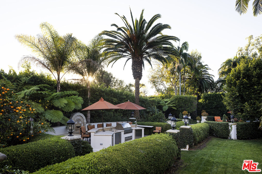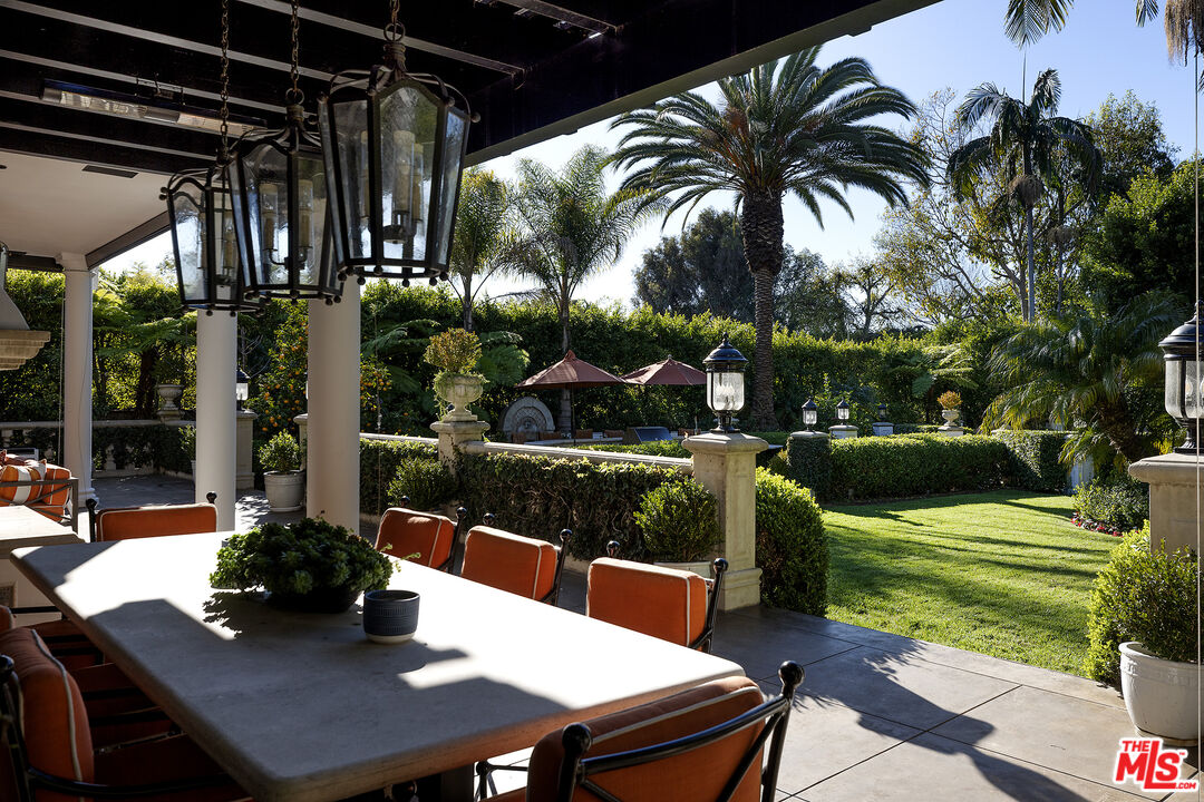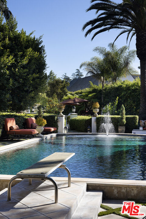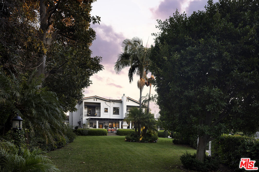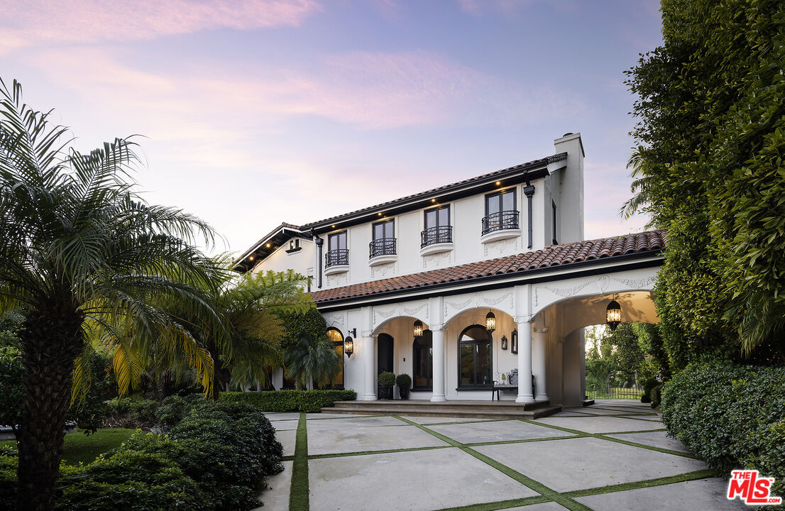 Presenting an exceptionally renovated, move-in-ready 1920s estate on two-thirds of an acre in coveted Hancock Park, offering manicured grounds enveloped by lush landscaping and pristine gardens with a variety of indoor and outdoor spaces to roam, relax, and entertain. Classic charm abounds throughout this peaceful entertainer's manse with fine finishes and premier amenities so characteristic of this distinctive, storied enclave near the Wilshire Country Club and Larchmont Village. Set behind privacy gates with an expansive motor court and circular drive, this legacy property underwent an extensive restoration by its present owners, preserving its rich architectural importance and heritage. A festooned porte-cochere proceeds to the home's enchanting portico for receiving guests. Inside, rich hardwood floors flow from the formal entrance hall and into the grand formal living room with high ceilings, double staircase, distinctive fireplace, and a series of archways that set the tone for the whole of the residence. Volume abounds throughout. A large family room has French doors that open to the outside, adjacent to the country kitchen with glass-paned cabinetry, center island with pet nook, state-of-the-art appliances including cooktop and warming drawer, and attached mudroom leading to al-fresco dining areas. Nearby, the formal dining room includes temperature-controlled wine storage, and a proper wood-paneled wet bar is configured with a tasting ledge seating three. Lounge or play pool in the billiards room, or work and study in the home office. Upstairs, the owner's wing has a sitting area with traditional fireplace and opens to its own private terrace overlooking the rear grounds. Its en-suite bathroom features a dual-sink vanity with makeup desk and separate tub and shower, and a walk-in closet is appointed with custom built-ins. A beautiful junior primary bedroom includes soaring vaulted ceilings and a fireplace with elegant marble mantle. One of the secondary bedrooms also has its own spacious balcony and opens to a Hollywood-style bathroom, and a flex space can be utilized as a pajama room or second office. There is even a bonus television/card room with a bathroom and dry sauna. Outside, curated park-like grounds offer endless special moments for rejuvenation and hosting numerous party guests in a magical setting. Enjoy an outdoor living room with wood-burning fireplace and motorized patio shades, an outdoor dining room, and sprawling grassy lawn. A European villa-style saltwater pool is pebble-finished and centered by an elegant water feature, the recreational space encircled by diamond pavers, garden vases, and pristine hedges. Other outdoor amenities include a large built-in barbecue, soothing fountain, various outdoor sitting areas, gardens, pathways, and dog run. Relish serenity and peace in this iconic historical neighborhood, the original choice of the city's founders and cherished by Los Angeles royalty for generations.