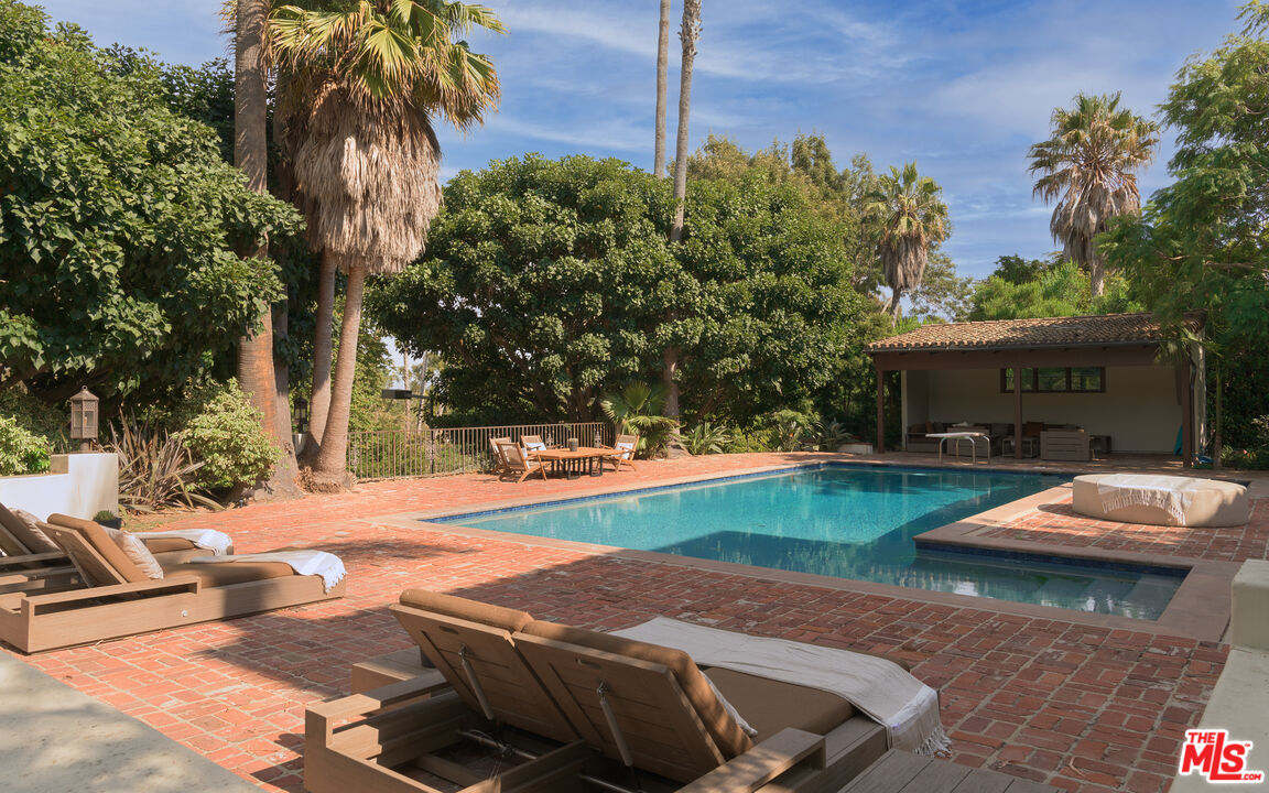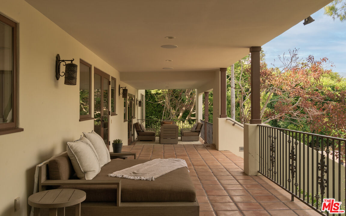 Nestled on one of Malibu's most prestigious streets, this gated estate offers an extraordinary blend of timeless Spanish architecture, refined interiors, and a resort-style outdoor lifestyle. Set on expansive grounds with a full-size tennis court, pool, and mature landscaping, the residence provides the rare opportunity to experience both elegance and comfort in one of Southern California's most sought-after coastal enclaves.The home is introduced by a broad stone motor court, lush gardens, and the classic silhouette of a Spanish-style villa with rustic clay tile rooflines. A graceful entryway opens to interiors that immediately set the tone: airy, light-filled, and designed for seamless indooroutdoor living. Inside, soaring vaulted ceilings with exposed wood beams pair with wide-plank oak floors and crisp white walls to create an atmosphere of modern coastal elegance. The formal living room features a dramatic fireplace, walls of glass that frame garden views, and an elegant wet bar with stone counters, perfect for entertaining. Multiple living and family rooms are each anchored by fireplaces and framed by oversized windows or French doors that open to terraces and gardens. Thoughtful details, from arched passageways to custom built-ins and rich wood accents, balance sophistication with a natural sense of ease.At the heart of the home is a chef's kitchen, outfitted with custom wood cabinetry, stone countertops, and a suite of professional-grade appliances including a La Canche range and Gaggenau appliances throughout. A large center island anchors the space, while vaulted ceilings and walls of glass flood the room with natural light. Direct access to the dining terrace makes al fresco meals effortless, and an adjacent casual lounge with fireplace provides the perfect spot to gather and unwind.The primary suite serves as a serene retreat, featuring vaulted ceilings, a fireplace, and expansive windows overlooking lush greenery. Its spa-inspired bathroom includes a freestanding soaking tub, an oversized glass shower, dual vanities, and a soothing neutral palette, while a custom walk-in closet offers generous storage with bespoke cabinetry. Additional bedroom suites open onto private balconies or garden terraces, offering comfort and privacy for family and guests alike.Designed for a true California lifestyle, the estate boasts multiple terraces, shaded loggias, and lounging areas that embrace Malibu's indooroutdoor flow. A grand staircase leads down to the expansive pool terrace, where a sparkling pool is surrounded by red-brick patios, framed by mature palms and verdant landscaping. A shaded cabana with lounge seating, television, and dining space makes the area ideal for entertaining day or night. Beyond the pool lies a rare amenity for Malibu, a full-size tennis court complete with lighting and additional lawn areas, creating a private playground for recreation and gatherings.Modern comforts include a premier Savant audio system with smart-home integration, a whole-house water filtration system, and thoughtful upgrades throughout.Privately tucked away yet only moments from Malibu's iconic beaches, shops, and dining, 7046 Grasswood Avenue is more than a residence, it is a lifestyle estate. From timeless architectural character to state-of-the-art amenities, this property offers the perfect blend of sophistication, comfort, and relaxed coastal living.