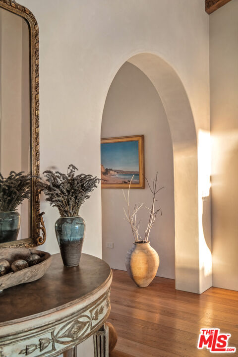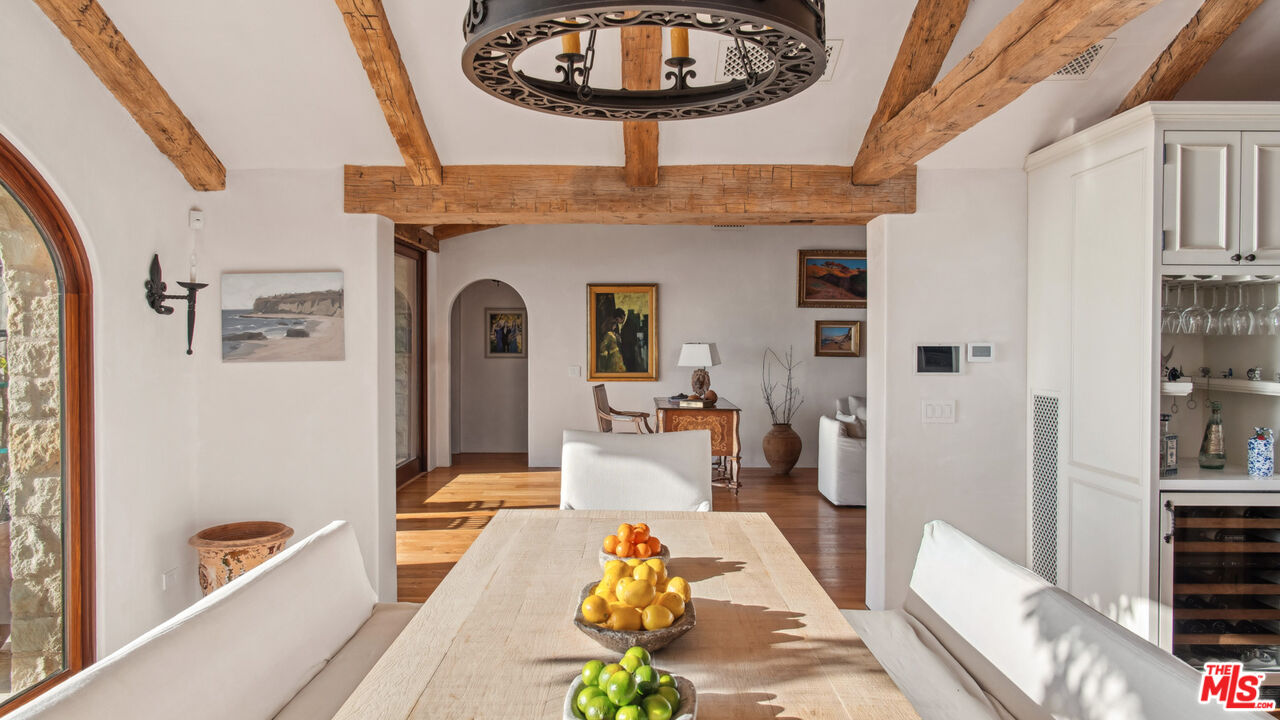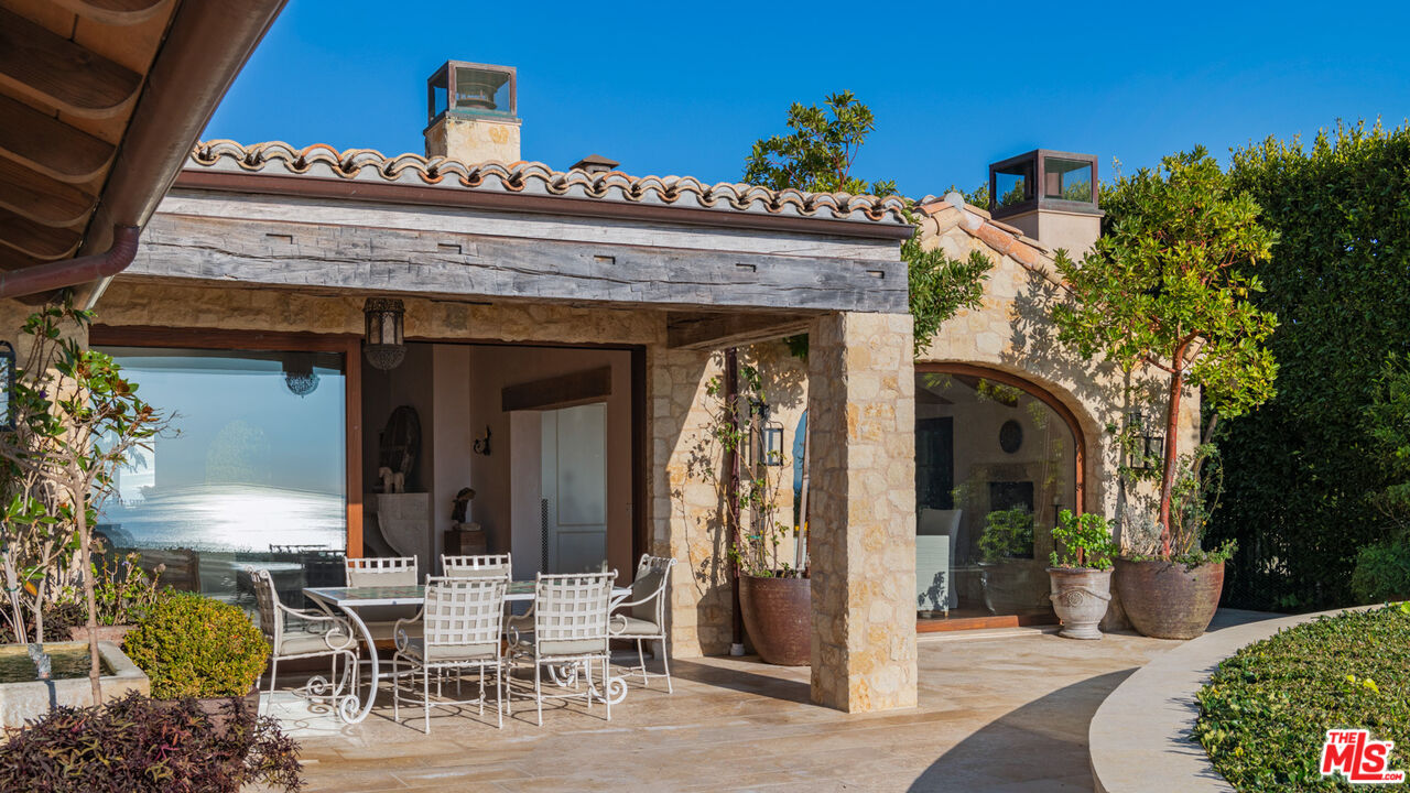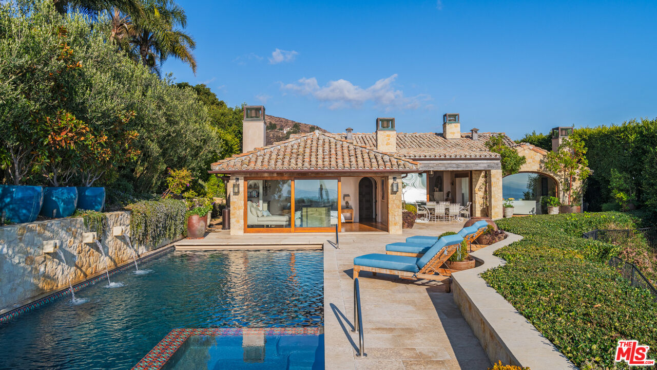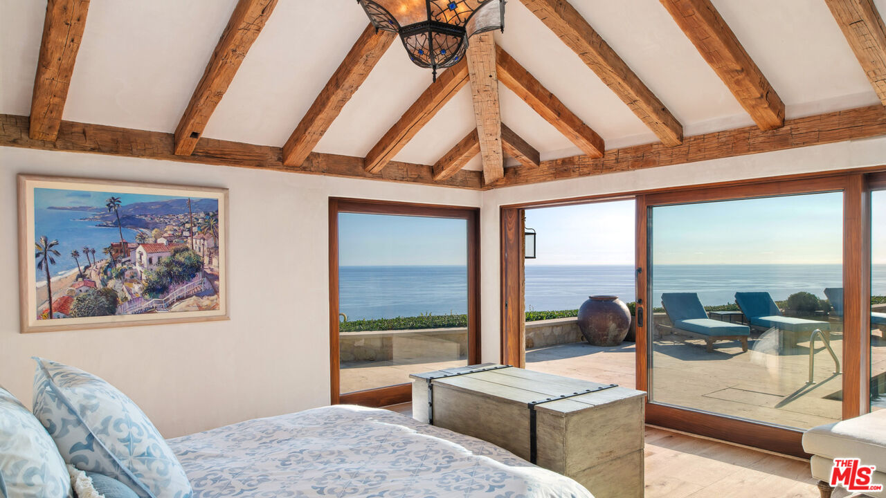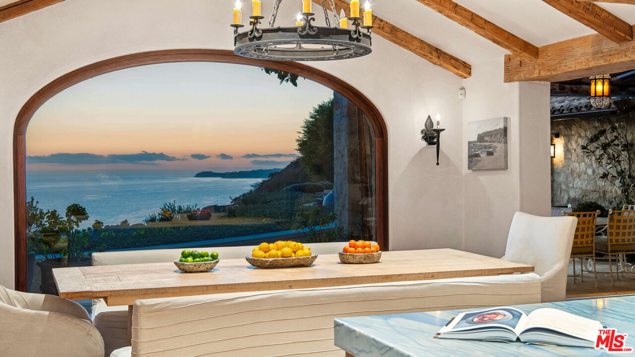 Discover unparalleled luxury in this exquisite French Country-style estate, a masterpiece of European elegance crafted by renowned builder Paul Brant Williger. Nestled in a prestigious enclave, this architectural gem blends breathtaking ocean views with world-class amenities and impeccable craftsmanship.A stone-arched entryway invites you into a world of sophistication, where soaring vaulted ceilings, reclaimed French oak floors, and antique wood beams create an ambiance of timeless grandeur. The living room, anchored by an antique wood-burning fireplace imported from France, seamlessly connects to the outdoors, offering an airy and inviting retreat. Adjacent, the great room charms with a cozy firewood nook, perfect for intimate evenings.The chef's kitchen is a culinary masterpiece, featuring a sprawling quartzite island, Caesarstone counters, and premium appliances, including a 6-burner Wolf range, dual Miele dishwashers, Sub-Zero refrigeration, a built-in Wolf microwave, and a Miele coffee machine. Custom antique French tiles, a built-in bar with wine storage, and vaulted ceilings elevate its allure. The formal dining room captivates with a fireplace, wood-beamed vaulted ceilings, and sweeping coastline vistas. A nearby powder room impresses with French tile floors, a floating sink imported from France, and bespoke lighting.The primary suite is a serene haven, offering ocean and pool views, a fireplace, and sliding doors to the lush backyard. Its spa-inspired ensuite boasts mosaic tile floors, stone counters, a double vanity, a walk-in shower with a marble bench, and an in-ground soaking tub framed by elegant French windows. Additional bedrooms feature vaulted ceilings, walk-in closets, and luxurious baths adorned with imported tiles and custom finishes.A converted garage serves as a versatile office or gym, complete with built-ins, skylights, and French doors opening to the garden. The well-appointed laundry room adds convenience with built-in storage, a new washer and dryer, and a wine fridge.The backyard is a private paradise, showcasing panoramic ocean views, a rectangular pool with an integrated hot tub, a fire pit with a custom-built couch, and a tranquil waterfall. A covered outdoor dining area, equipped with infrared heaters and an exterior fireplace, ensures year-round enjoyment. Hand-finished French limestone paves the yard, offering a slip-resistant, elegant surface.Uncompromising craftsmanship defines this estate, from imported antique doors to a handmade Tuscan tile roof. Modern conveniences include ultra-sound-resistant glass windows and sliders, push-button automatic shades, a whole-home generator, three-zone climate control, and a comprehensive security system. With four fireplaces, four fountains, and mesmerizing sunsets over Little Dume, this home offers an unrivaled living experience.Featured in Luxe Magazine and two HBO productions, this residence will soon be part of a gated, fire-wise community with low HOA dues. Every detailfrom antique French tiles to Excalibur hand-finished plaster wallsreflects the essence of a timeless European retreat, blending elegance, refinement, and extraordinary beauty. Available 6/1/25 to 1/15/26, 3/15/26 to 7/1/26, 10/1/26 to 1/15/27.