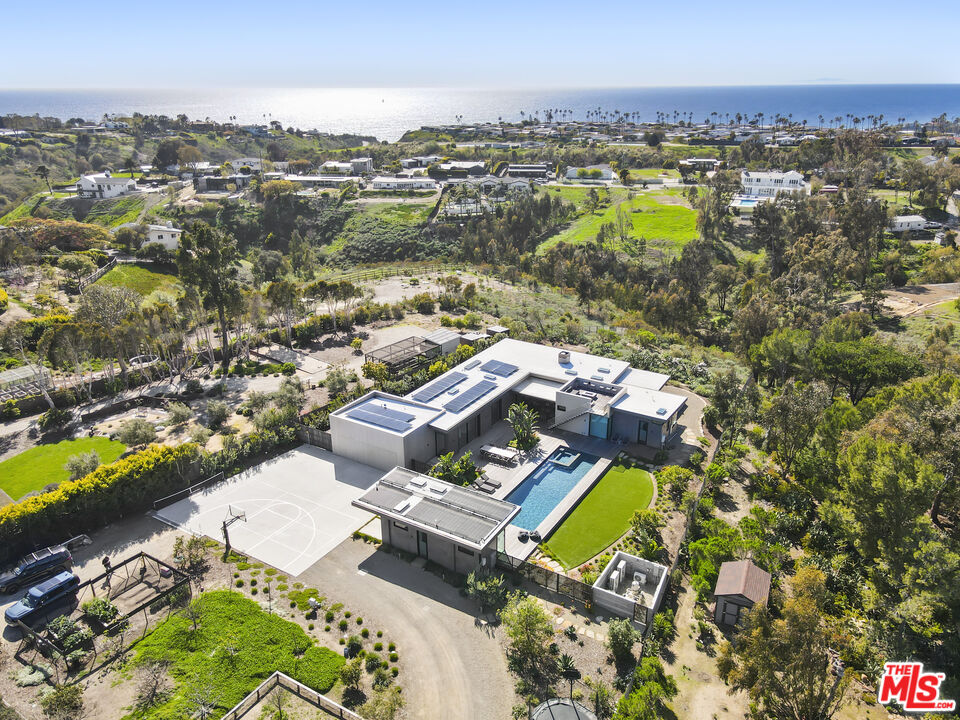 Coastal Modernism on Point Dume | Main Residence + Guest House! Welcome to a stunning example of Coastal Modernism; Malibu's new class of design-forward living. Set behind private gates and thoughtfully positioned back from the road for exceptional privacy, this newly built estate captures the essence of contemporary California architecture, where clean lines, natural textures, and light-filled volumes create an effortless harmony between home and landscape. The main residence features 4 bedrooms and 4.5 bathrooms across expansive, open living spaces framed by Sky-Frame, Swiss-engineered floor-to-ceiling glass doors, allowing for seamless transitions between indoors and out. Every detail has been curated with precision custom millwork, Venetian plaster walls, imported stone surfaces, wide-plank oak floors, and designer lighting all speak to elevated taste and enduring craftsmanship. The chef's kitchen blends form and function with premium appliances, a striking island, and bespoke cabinetry. The primary suite serves as a private retreat, offering a spa-style bathroom with a soaking tub and a terrace overlooking the lush grounds. Smart-home technology is fully integrated throughout, including smart toilets, a solar generator system, and energy-efficient design that reflects a commitment to sustainability and modern comfort. The outdoor living experience serves as an architectural extension of the home, featuring multiple entertainment areas, a veranda with TV and fireplace, expansive decks overlooking the landscaped grounds and ocean views, and a cozy firepit seating area. A rooftop deck with firepit, pool, spa, and pool house completes the resort-style ambiance. The pool house includes a full bathroom, custom-designed Murphy bed, steam shower, and a fully equipped gym, all surrounded by landscaping designed for privacy, relaxation, and entertaining. A 2 bedroom 2.5 bathroom guest residence complements the main home with equal sophistication. Featuring high ceilings, hardwood floors, Fleetwood pocket doors, and a loft with an office, it provides independent living while maintaining architectural unity with the main house. Outdoor decks, a detached office with half bath, private spa, outdoor shower, and firepit complete this beautifully considered space. Located in Point Dume, one of Malibu's most sought-after neighborhoods, this estate includes coveted beach key access to Little Dume Beach, celebrated for its natural beauty, world-class surf breaks, and serene coastal setting. Just minutes from Malibu's best dining, markets, and schools, this property embodies the pinnacle of modern coastal living, architecturally significant, thoughtfully built, and designed to connect deeply with both the land and the ocean. The estate also features a three-car garage, vegetable garden, and dedicated basketball/pickleball area, making it a complete expression of Malibu luxury, lifestyle, and design. Please note: The property is currently leased at $50,000 per month, which excludes the 1,300 SF detached 2BD/2.5BA guest house. The new offering price at $62,000 includes the entire property.