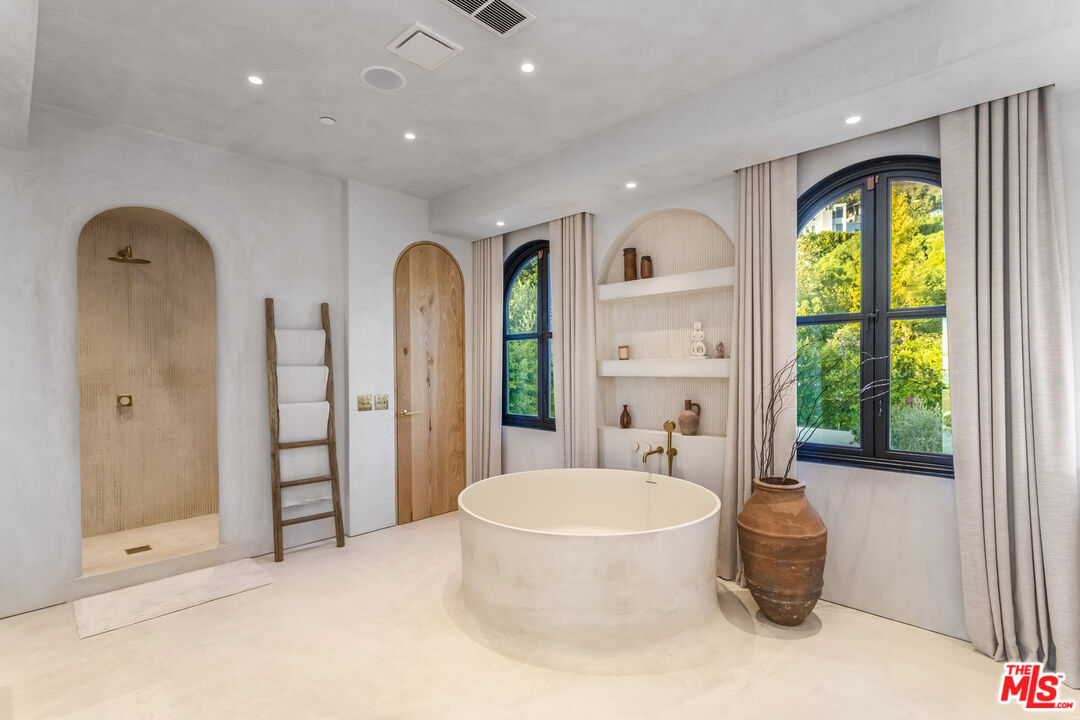 Tucked behind private gates on a flat half-acre, this one-of-a-kind Malibu estate feels more like a sanctuary than a home. The arrival is cinematic, a graceful drive-in/out motor court framed by olive and fruit trees, manicured lawns, and sculpted succulents that lead you into a world of style, calm, and wonder. Inside, over 5,950 sq ft of interiors flow effortlessly through arched hallways, reclaimed Italian limestone, and hand-finished plaster walls. Every room is alive with detail; reclaimed oak floors underfoot, hand-crafted steel windows framing ocean views, and soaring spaces washed in natural light. Each of the four grand bedroom suites is a retreat, with its own spa-like bathroom and walk-in closet, crowned by a primary suite that rivals any five-star escape. The heart of the home is expansive yet intimate: a kitchen dressed in Taj Mahal stone and hand-built oak cabinetry, opening to living spaces designed for both celebration and serenity. Beyond, over 3,000 sq ft of terraces and decks invite endless entertaining, fireplaces flickering under the stars, Moroccan-tiled pool and spa sparkling beside fountains, and wide open views of the Pacific stretching endlessly before you.Every practical luxury has been considered. The home is filled with an abundance of fixtures and amenities, including wine fridges, drinks fridges, freezers, ice machines, and two dishwashers to make entertaining effortless. A dedicated utility room and generous storage areas keep the home seamlessly organized, while the pantry, laid in exquisite Morelon tiles, offers a beautifully appointed space for every culinary and household needs. Below, an entire world awaits. A theatre with popcorn machine, a wine cellar, a speakeasy lounge with DJ booth, and a brass-finished bar carved into rock walls. Every touch has been curated by renowned designer Brittny Button, whose award-winning collection graces the interiors alongside treasures like a 13th-century fireplace and historic Moroccan fountains. Wellness is woven in: a gym, sauna, steam, and cold plunge open to the private pickleball court, with a self-contained Airstream guest house offering the perfect hideaway. Sustainability, comfort, and security are paramount, with a full battery-backed solar system, water purification, clean air technology, Crestron home automation, and a complete camera/alarm system. This estate is more than architecture, it's a feeling. A place where the soul of Morocco meets the magic of Malibu, where every sunset becomes a private painting, and every gathering turns into a memory. Featured in Architectural Digest, Vogue Living, and The Luxury Home Show, it is a creation that simply does not exist anywhere else.
