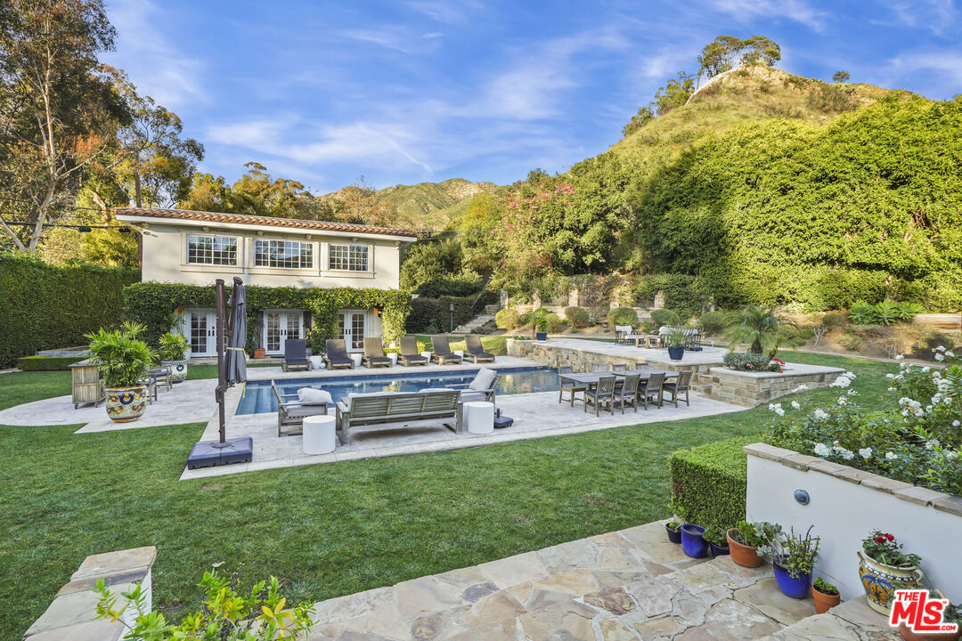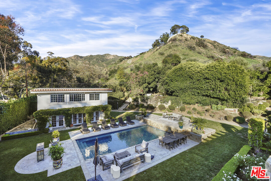 A timeless three-level Tuscan Villa in Malibu's Premiere guard gated location of "Serra Retreat," offering approximately 8,564 square feet, with 6 bedrooms and 8bathrooms, where Old-World romance meets modern Malibu luxury. Set behind gates on over an acre of impeccably landscaped, private grounds, the estate is moments from Surfrider Beach, the Malibu Pier, Whole Foods, and the boutiques and dining of Cross Creek, while neighboring the peaceful, protected setting of the Serra Retreat monastery, delivering rare serenity and privacy in a coveted coastal location. Thoughtfully designed and offering exceptional peace of mind, this is a true sanctuary by the sea. Inside, an ideal open floor plan unfolds with soaring wood-beamed ceilings, rich hardwood floors, elegant crown moldings, and multiple fireplaces that create warmth, character, and effortless sophistication. The main level is designed for both grand entertaining and intimate daily living, featuring a family room, formal dining room, an inviting media room, two powder rooms, and a gourmet kitchen with dual islands, premium appliances, and a sunlit eating area. A main-level bedroom opens directly to the expansive garden, while a private office suite with an attached full bath doubles seamlessly as a guest retreat. The lower level offers exceptional flexibility, including a spacious bedroom suite with its own entrance and ensuite bath, a large pantry, a generous laundry room, and a serene spa room complete with a far-infrared sauna and an additional full bath. Two oversized bonus rooms currently enjoyed as a kids' den and yoga studio provide endless opportunities for wellness, recreation, or creative use.Upstairs, the primary suite is a private sanctuary, featuring dual walk-in closets, a spa-inspired bathroom with an oversized shower and standalone soaking tub, and a tranquil terrace with mountain views. Two additional bedrooms, each with ensuite bathrooms, complete the upper level. Enhancing the estate is a two-story guest home, ideal for extended family, visitors, or staff, along with additional separate office space, offering exceptional flexibility for work-from-home living, creative pursuits, or private meetings without intrusion into the main residence. Outdoors, the property transforms into a resort-style haven: an expansive backyard with pool, patio, fireplace, BBQ, and dining area, complemented by a romantic flower garden with fountain and a vast grassy lawn. Perfect for entertaining, family living, or quiet moments of retreat. Completing the offering is a four-car garage, massive indoor storage area, solar panels, and a backup generator, providing modern efficiency, resilience, and everyday practicality to match the estate's beauty and scale. This Malibu estate delivers privacy, presence, and timeless elegance at the highest level. Available furnished, and also available for sale at $15,000,000.